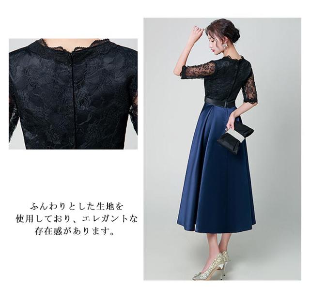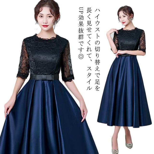 結婚式 ロングドレス 五分袖 二の腕カバー 大きいサイズ ワンピース ドレス パーティー フォーマル 大人 半袖 レース 上品 フレア パーティードレス aライン ママ お呼ばれ 50代 30代 40代 母親 ゆったり きれいめ