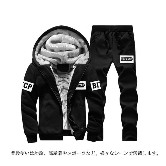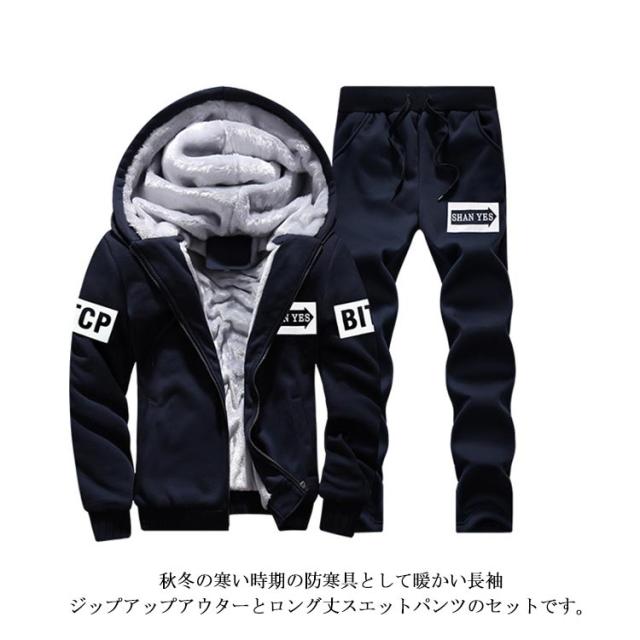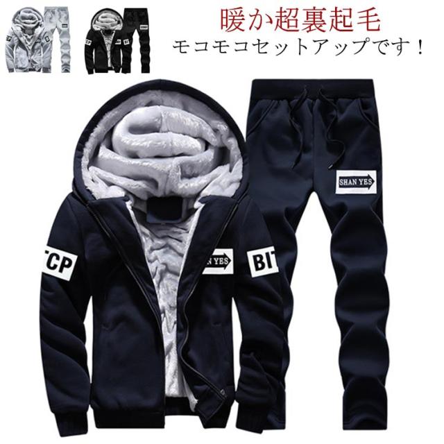 裏起毛 ジャージ メンズ スウェット 上下セット 裏ボア 長袖 ジップパーカー パンツ セットアップ 暖かい 秋冬 普段着 部屋着 ストリート系 お兄系 ゴルフ 父の日 プレゼント ギフト