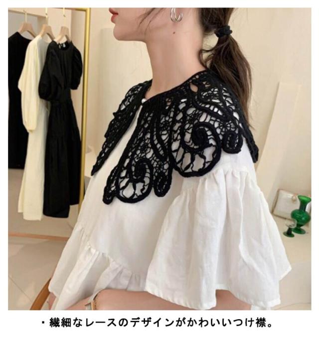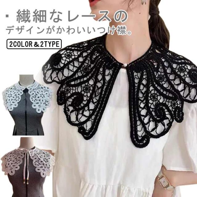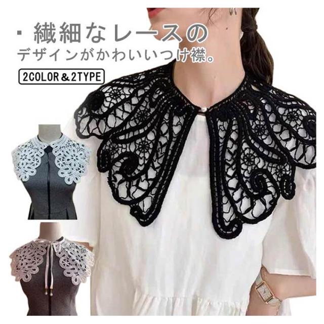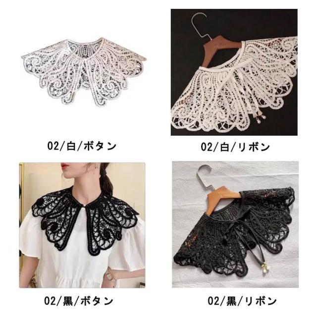 付け襟 レース レディース 女性 総レース 花柄 ビッグカラー レイヤード 重ね着風 リボンタイプ ボタンタイプ 選べる2タイプ 小物 全2種類