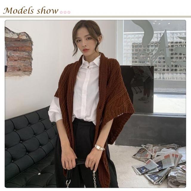 送料無料 レディース ニット ローゲージニット モコモコ ニットケープ ニット カーディガン ポンチョ Vネック ゆったり 女性 防寒 ケープ ボレロ コート ケーブル あったか カワイイ セーター 春 秋 冬