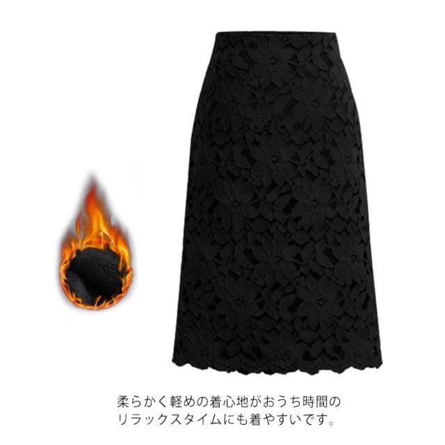 裏起毛 レーススカート 秋冬 タイトスカート ひざ丈 スカラップ 膝丈 フラワーレース 通勤 オフィス きれいめ 可愛い セクシー 大きいサイズ 着?せ 隠すファスナー S M L XL 2XL 3XL 4XL 5XL 6XL