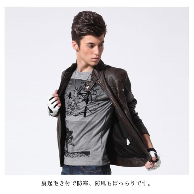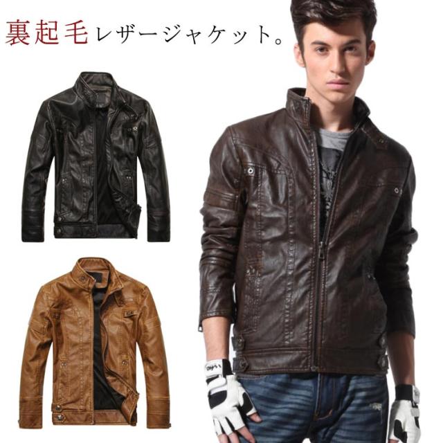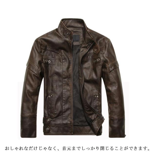 レザージャケット メンズ ライダースジャケット メンズ アウター ジャンパー スタンドカラー 立ち襟 内側ポケット付き フェイクレザー ジャケット おしゃれ 革ジャン 裏起毛 防寒 父の日 春 秋 冬 冬物 大きいサイズ 黒 バイクジャケット かっこいい M-5XL 送料無料