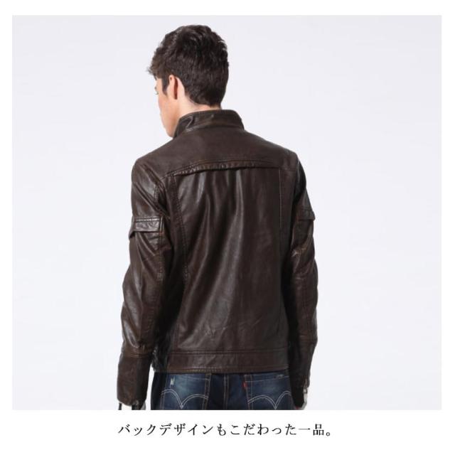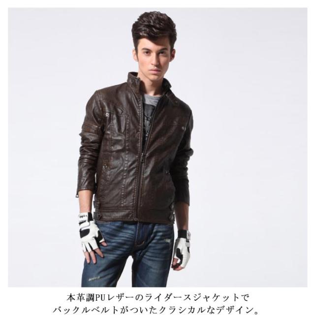 | 裏起毛レザージャケット。 本革調PUレザーのライダースジャケットでバックルベルトがついたクラシカルなデザイン。 バックルベルトとスナップボタンで留める、チンベルトが特徴。 おしゃれなだけじゃなく、首元までしっかり閉じることができます。 ジップアップ式、袖にもファスナーがついています。 バックデザインもこだわった一品。 裏起毛き付で防寒、防風もばっちりです。 | |