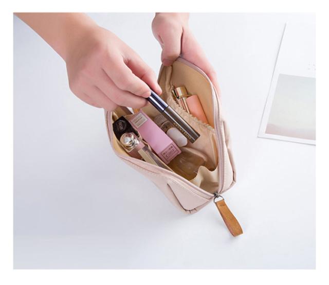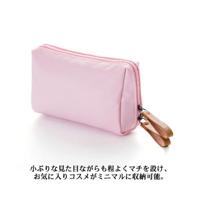 | 普段使いのコスメ小物をスッキリ収納!コンパクトで持ち運びに便利な化粧ポーチ。 化粧品だけでなく、カバンの中で迷子になっている小物達をまとめることも◎ 開け口が大きいから一目で中身を確認、大きめの物もすっぽりスムーズに取り出し。 ポーチの両サイドにこぼれ落ち防止のマチがあるので、化粧水ミニボトルやマニキュアの小瓶も横向きにしてしまえて安心。 ポーチ表生地は、ほんのりツヤ感のあるはっ水生地で仕上げ、洗面台やパウダールームでうっかり水滴がついても大丈夫! 普段使いにも、旅行にも便利なポーチです | |