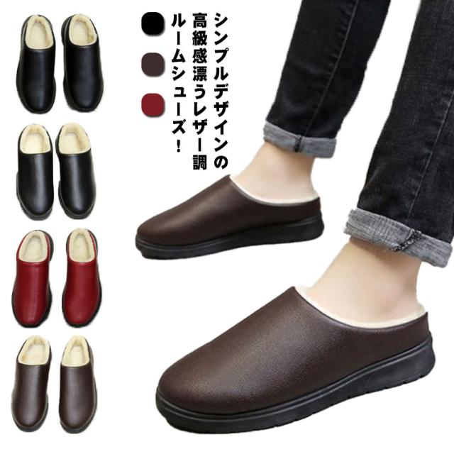 送料無料 レザー ルームシューズ ボア 冬 もこもこ あったか レディース メンズ 軽量 滑り止め スリッパ かわいい 室内 静音 冷え性 防災対策 来客用 部屋 オフィス 職場 お仕事 冷え対策 北欧 客招待 玄関 台所用 トイレ ギフト