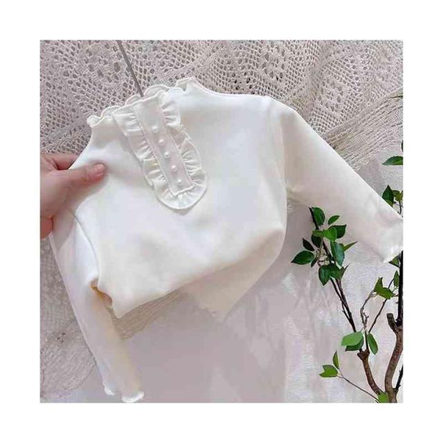 フリルブラウス インナーブラウス キッズ 春秋 シャツブラウス インナーウエア カジュアルブラウス インナーウエア 長袖 プルオーバー おしゃれブラウス 無地 シンプル おしゃれ フリル カジュアル 子供服 ジュニア おでかけ 送料無料 普段着