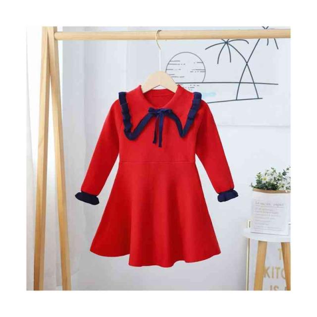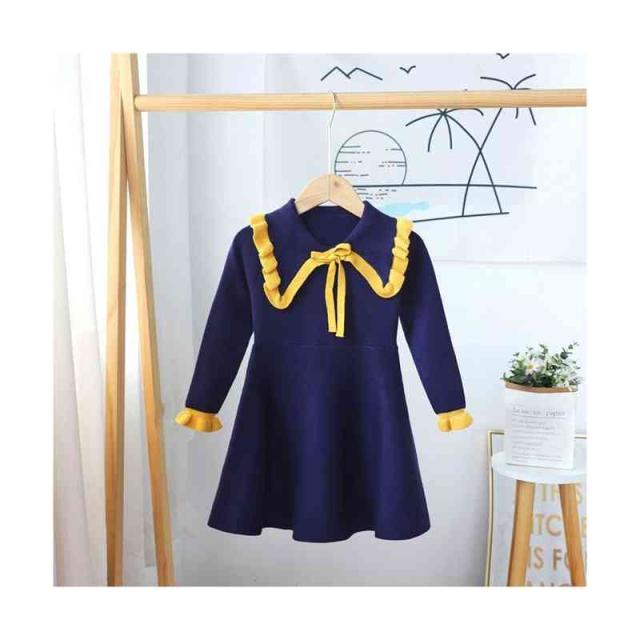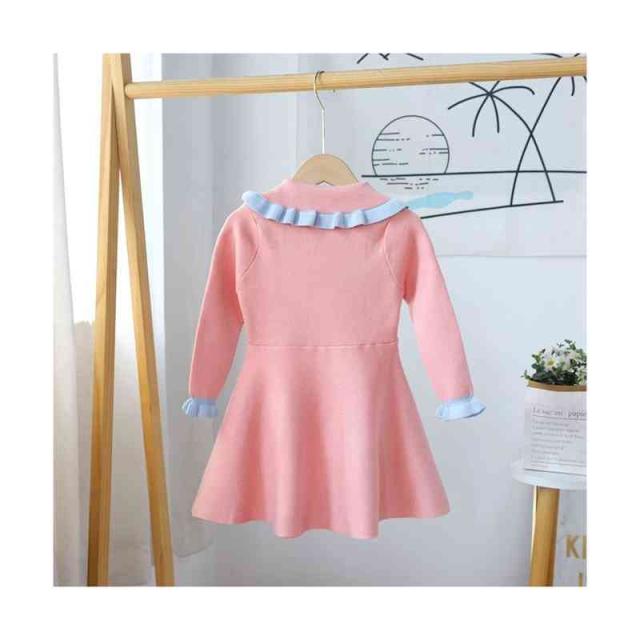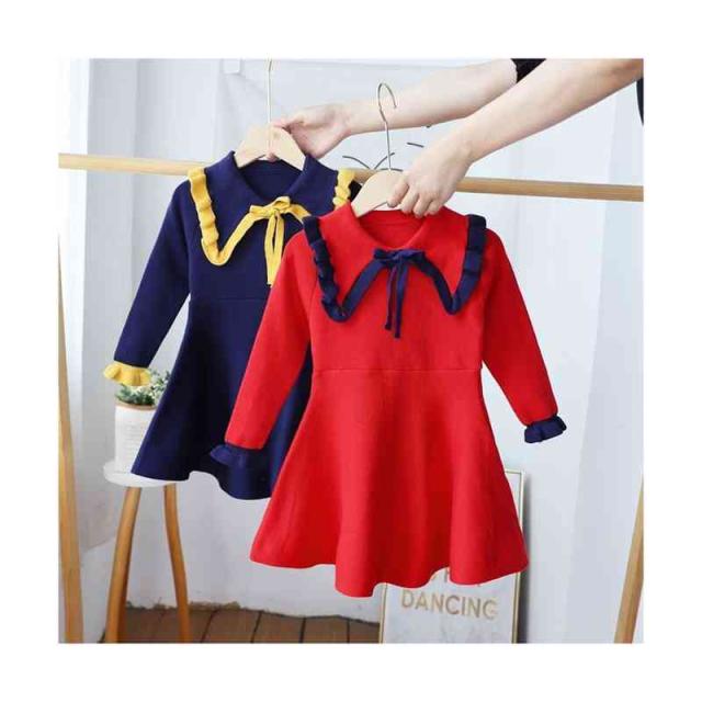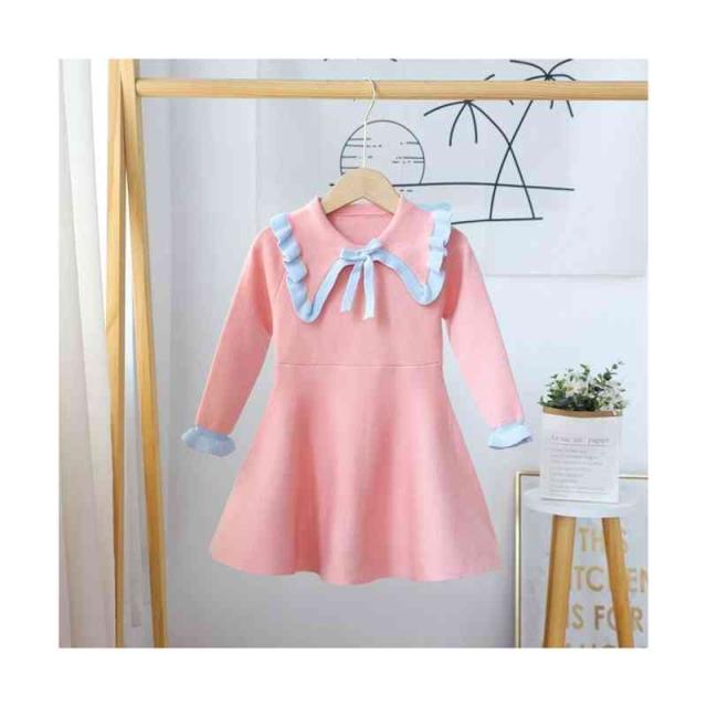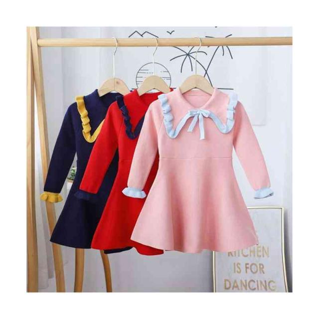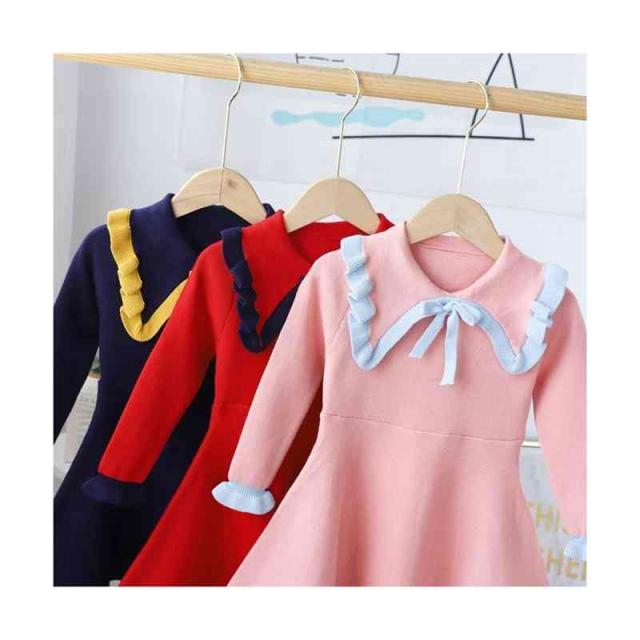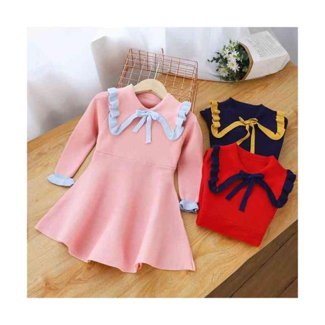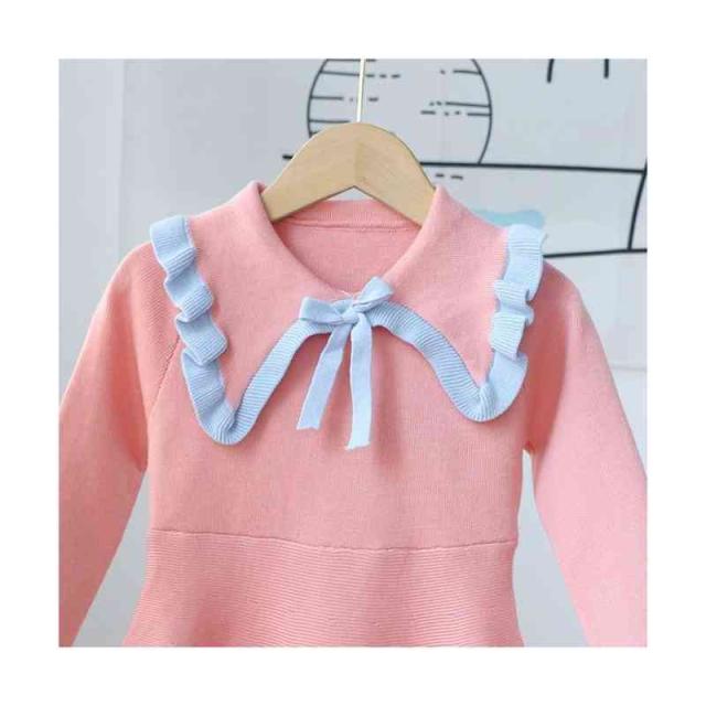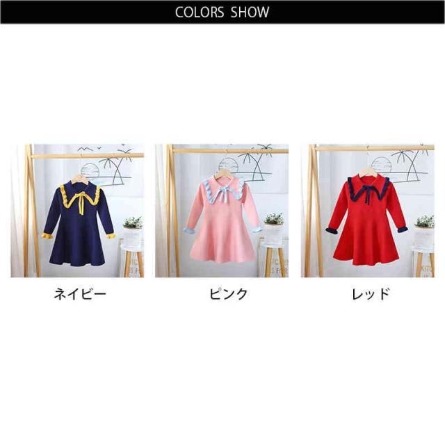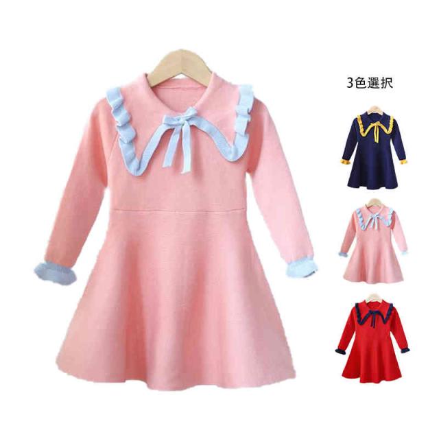 ベビーニットワンピース 春 秋冬 フリルワンピース ロングワンピース リボンワンピース ニットワンピース フリル おしゃれワンピース インナーワンピース 女の子 子供服 送料無料 おでかけ 学院風 長袖