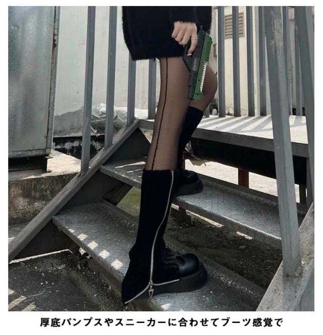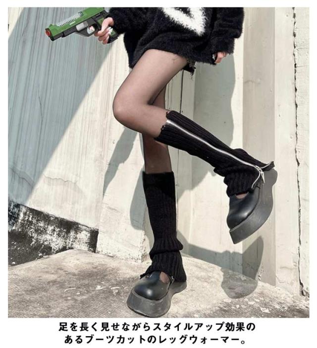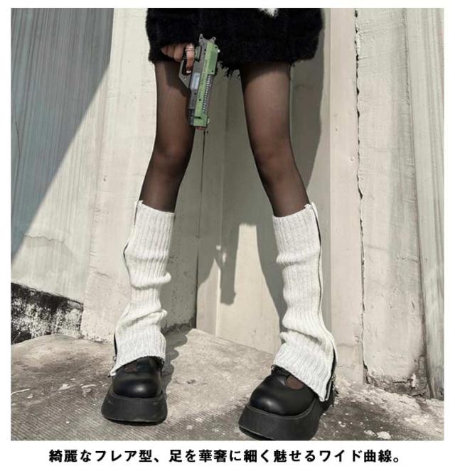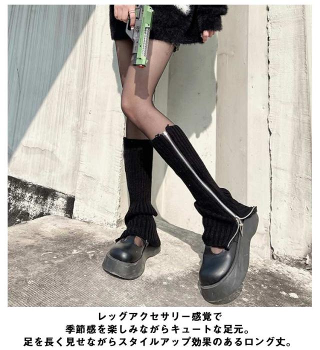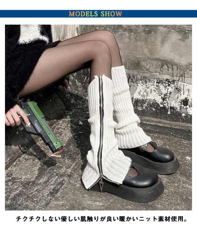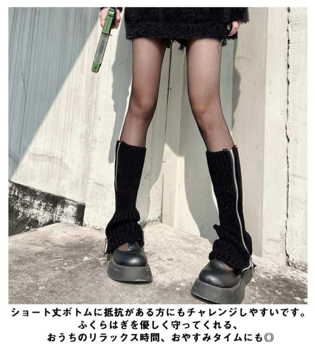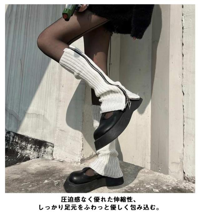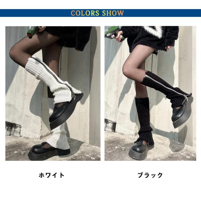 ジップアップ レッグウォーマー レッグカバー ルーズソックス風 足首ウォーマー ブラック ホワイト 無地 女子高生 JK ニットソックス 制服 ガーリー ガール 学生 ニーハイ クリス ニット イベント コスプレ 通学 メンヘラ 原宿系