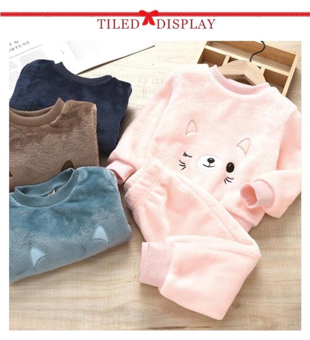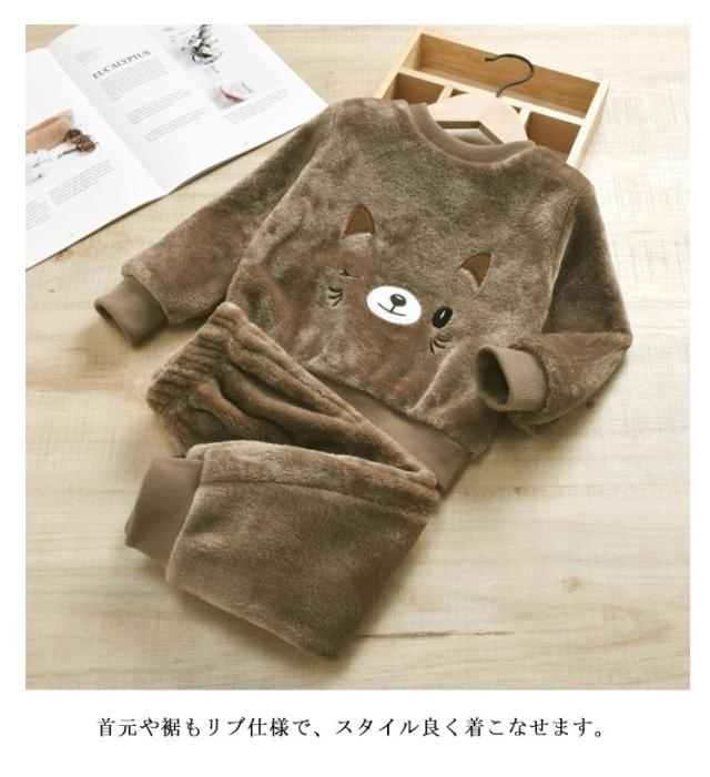 キッズ パジャマ 秋冬 プルオーバー 上下セット ルームウェア ボアフリース もこもこ 猫柄 猫顔 リブ 長ズボン 子ども服 女の子 男の子 部屋着 厚手 防寒 保温 あたっか 赤ちゃん 80 90 100 110 120 130 暖かい かわいい