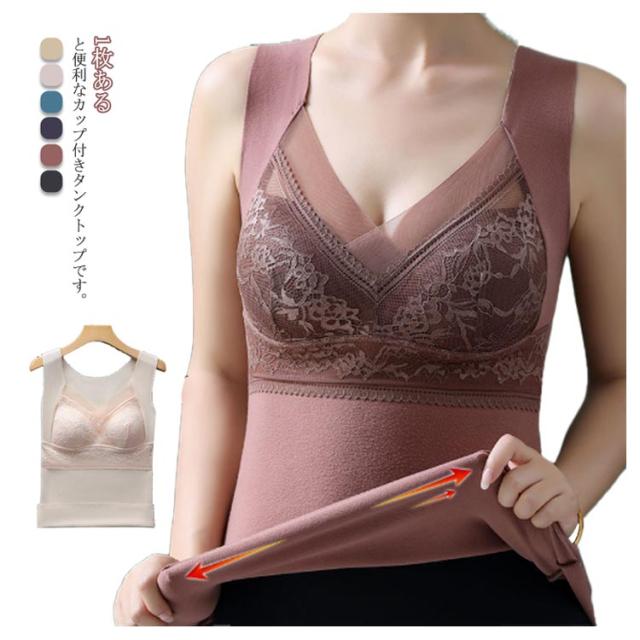 タンクトップ レディース 秋冬 あったか インナー レース 肌着 下着 暖かい 吸湿発熱 バストアップ 盛れる 裏起毛 厚手 伸びる 防寒 寒さ対策 発熱インナー カップ付き 送料無料