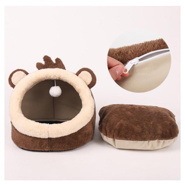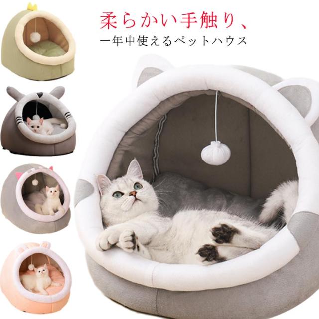 ドーム型 猫ハウス ペットベッド 秋冬用 猫ベッド 犬ベッド ペットハウス 猫 小型犬 クッション付き ペット用寝袋 ペット用品 保温防寒 洗える 寒さ対策 滑り止め 快適 柔らかい もこもこ あったか ぐっすり眠れる キャットベッド 室内用
