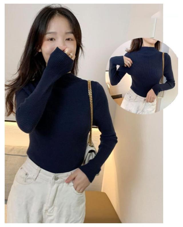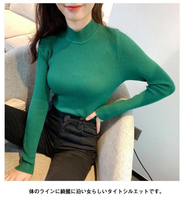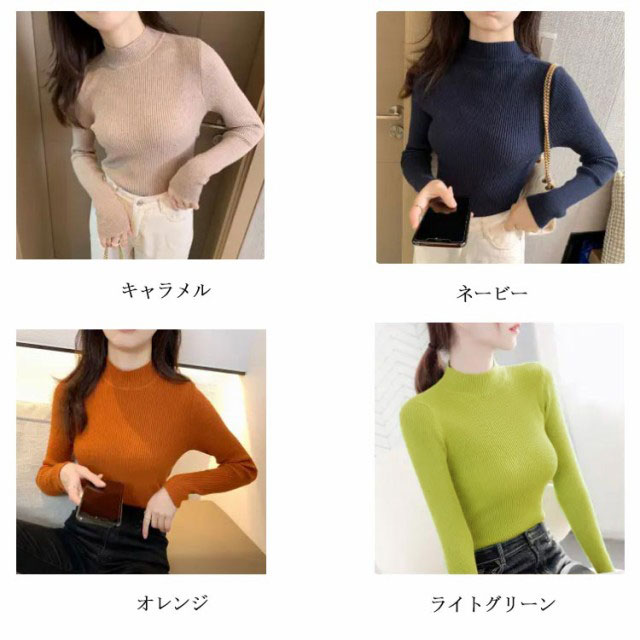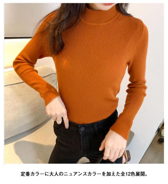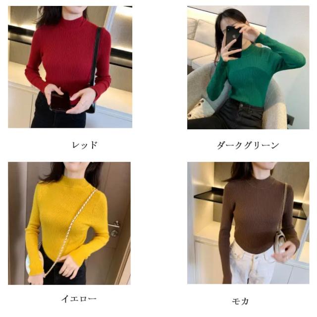 全12色×8サイズ!モックネック ニット セーター インナートップス リブニット レディース リブ ハイネックニット 長袖 ハイネック ニットトップス リブ 無地ニット プルオーバー ハーフハイネック 秋 冬