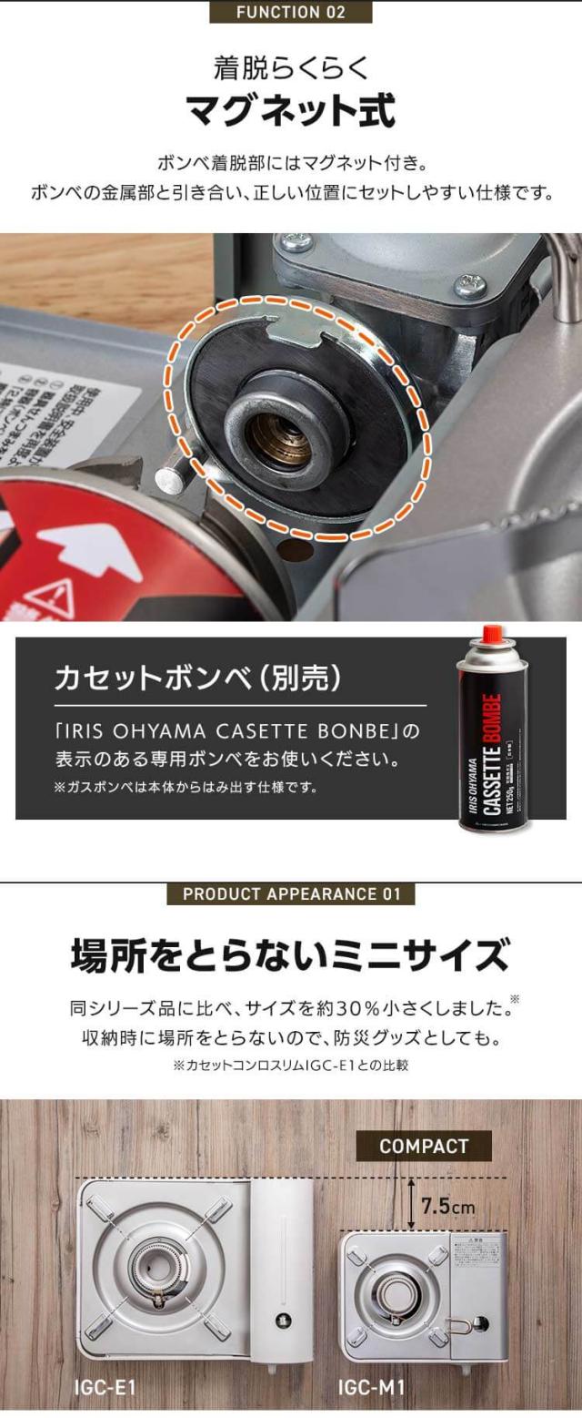 カセットコンロミニ IGC-M1-H 全3色 テーブルコンロ カセットコンロ 小型 アクティブ コンパクトモデル 卓上 キャンプ 調理 カセットガス 災害時 送料無料