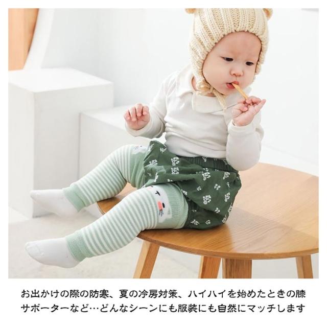 | 冷房・日焼け対策から、足首やひざのサポートまでレッグウォーマー。 着用した際に、いぬ・ねこの顔がちょうど膝にくるのがとってもキュートです。 お出かけの際の防寒、夏の冷房対策、ハイハイを始めたときの膝サポーターなど…どんなシーンにも服装にも自然にマッチします。 膝をやさしく覆ってくれるロングタイプなので、日よけや虫よけにも使えます。 抱っこ紐をする時は、カバーオールがずれて足首が出るのが気になって寒さ対策にばっちりです! | |