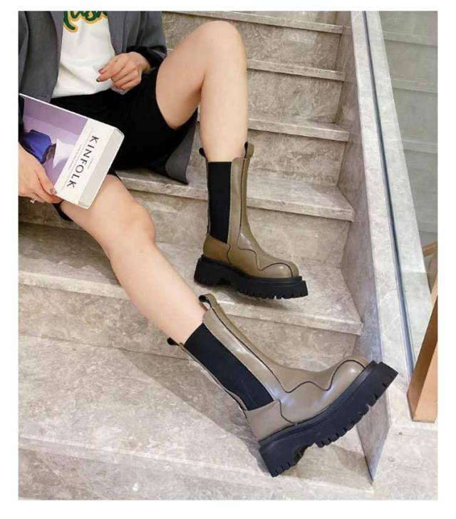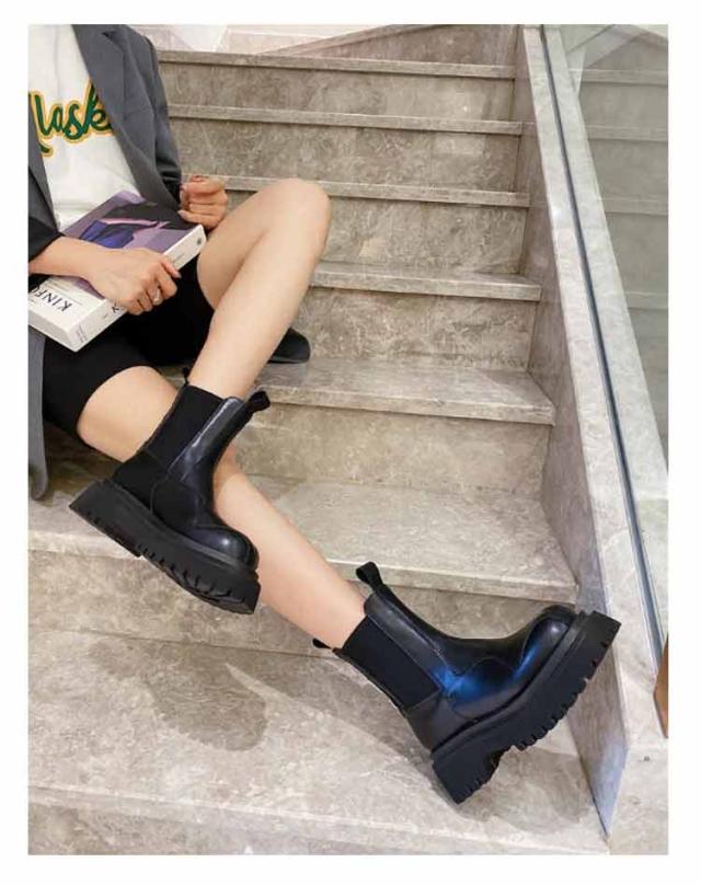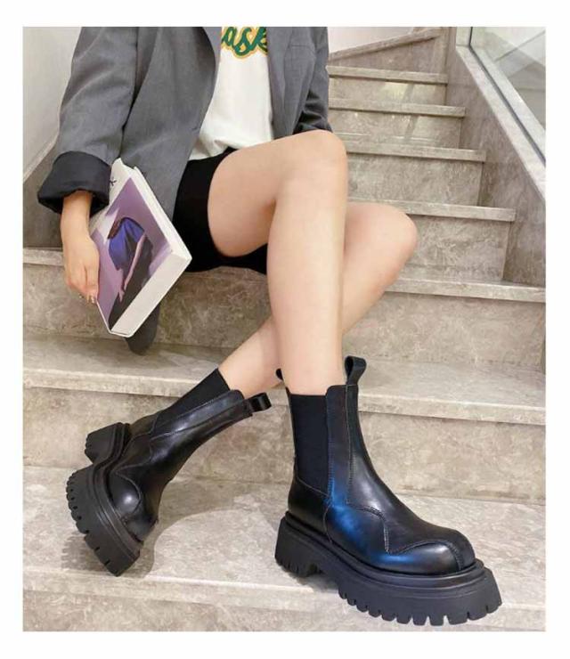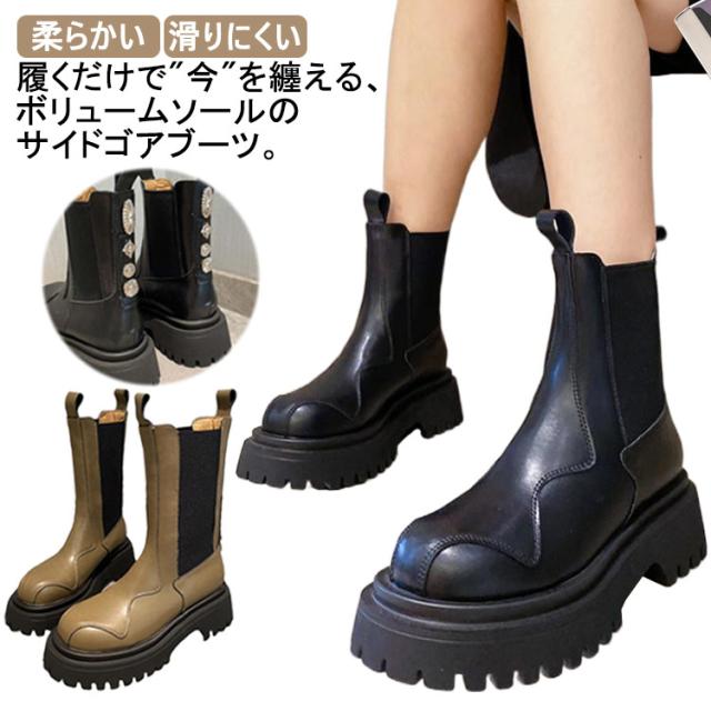 ブーツ ショート レディース サイドゴア サイドゴアブーツ ボリューム ソール 厚底 スクエアトゥ ショートブーツ モード系 ストリート系 靴 滑りにくい 歩きやすい 柔らかい