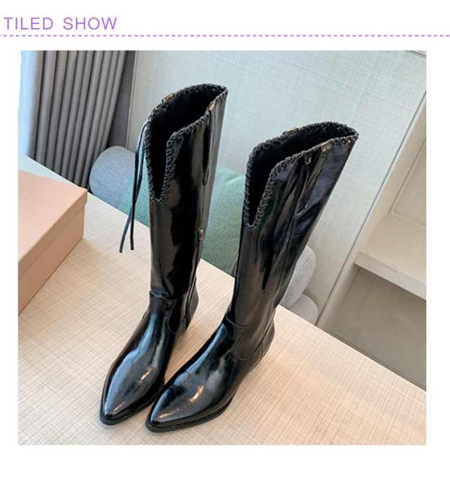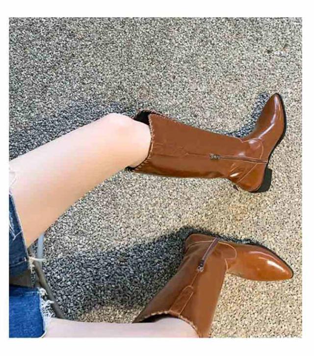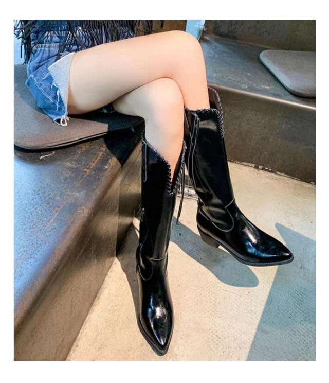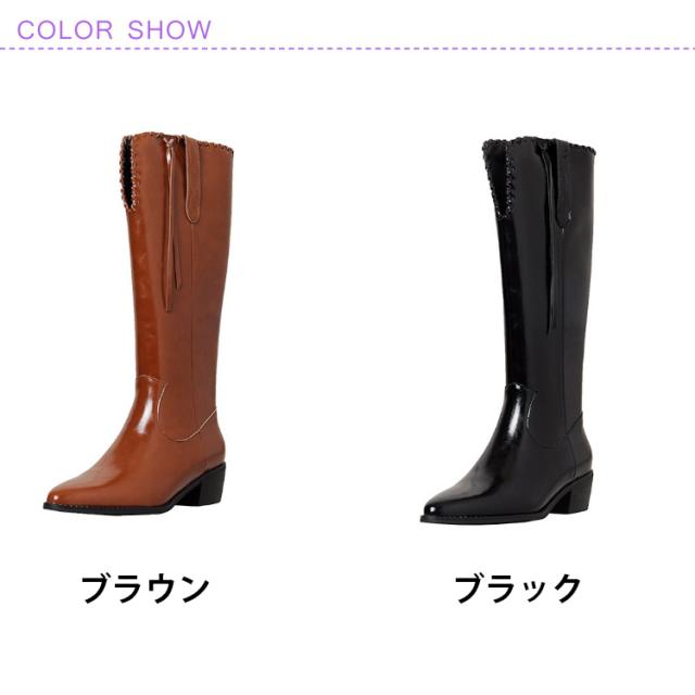 ウエスタンブーツ レディース ブーツ ロングブーツ 太ヒール ウエスタン タッセル 低ヒール ローヒール ヴィンテージ ビンテージ 韓国ファッション