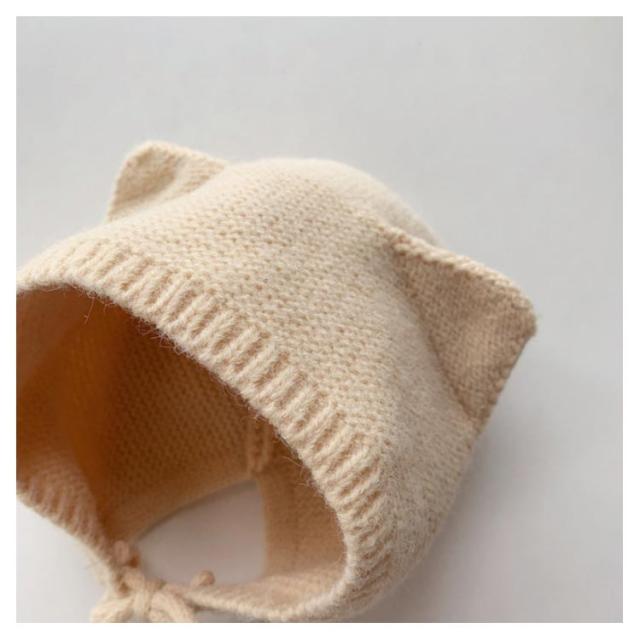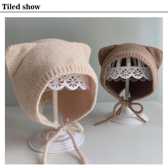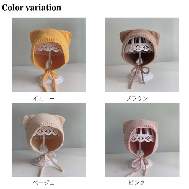 アニマルフードのニット帽耳付き ベビー用 4-12ヶ月使用 ニット帽 帽子 ぼうし 耳付き こども ベビー 赤ちゃん 女の子 男の子 キャップ 無地 アニマル 韓国子供服