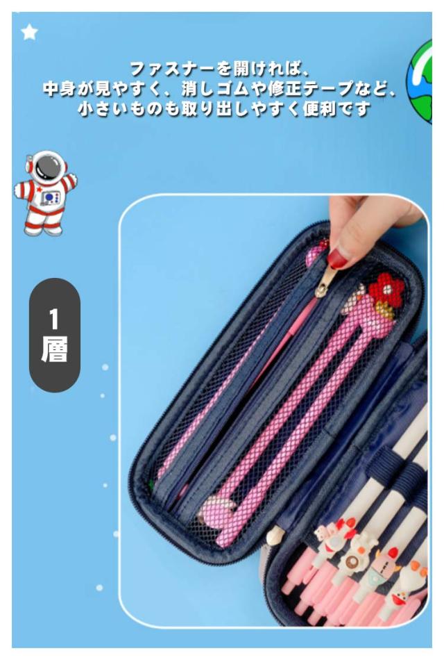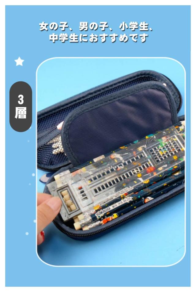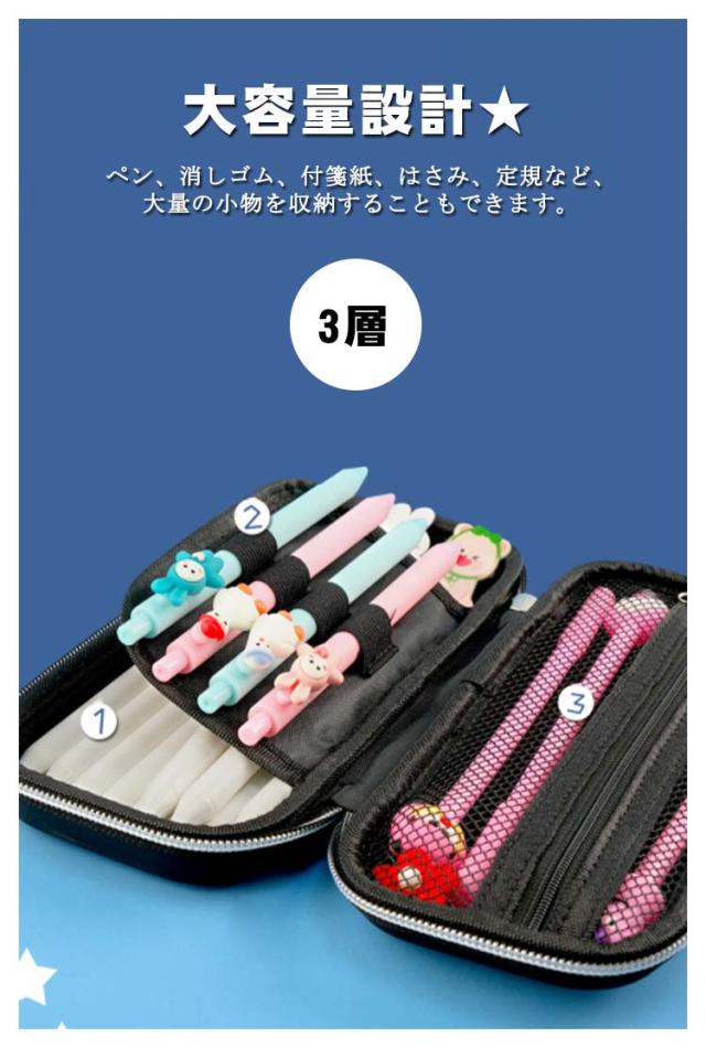 | 【商品名】ペンケース(ペンケースのみ販売、他の付属品はありません。) 【サイズ】サイズ表 【素材】EVA 【特徴】子供の心をキャッチ!立体模様を取り入れ、持つだけでワクワクさせられる可愛い3D立体ペンケースです。大容量設計★ペン、消しゴム、付箋紙、はさみ、定規など、大量の小物を収納することもできます。 良質で耐久性のあるEVA素材を使用。変形しにくく落下衝撃にも強いので筆記用具をしっかり守ります。 ファスナーを開ければ、中身が見やすく、消しゴムや修正テープなど、小さいものも取り出しやすく便利です。 内側にはメッシュポケット、ペンホルダーが付いているので、文房具を分類収納できる。 撥水性に優れる丈夫な素材でできています。汚れなどを水でサッと軽く拭き取ることができます。 ランドセルの隙間にも入るサイズで、コンパクトに持ち運び可能。 女の子、男の子、小学生、中学生におすすめです。 | |