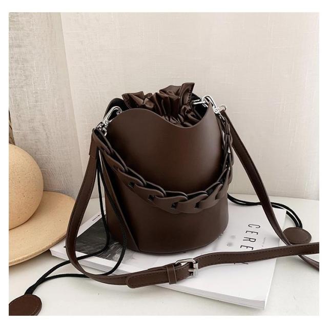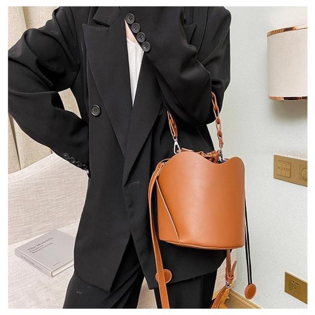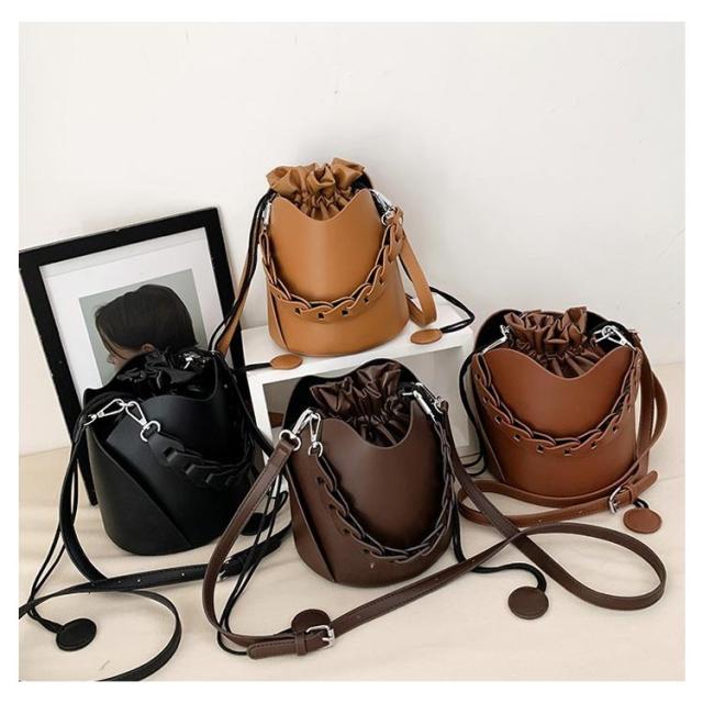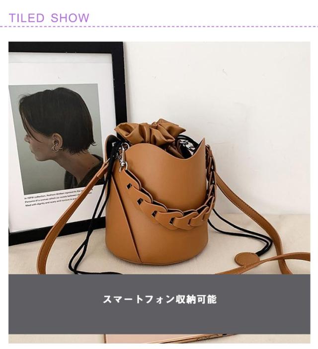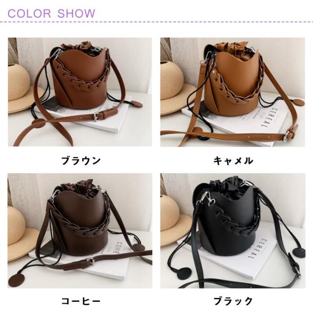 ハンドバッグ バケツバッグ ショルダーバッグ クロスボディ 巾着 無地 レザー 斜めがけ 肩がけ 手提げ バック ショルダー バッグ 黒 コーヒー 茶色 学生 通学 通勤 OL 大人カジュアル かわいい おしゃれ