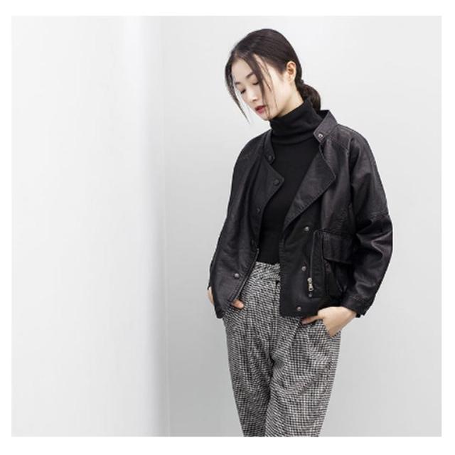 レザージャケット ノーカラージャケット レディース PU皮 秋 アウター ライダースジャケット コーデ 春 冬 フェイクレザー 黒 ベージュ シンプル カジュアル ゆったり ショート丈 おしゃれ 革ジャン 皮ジャン 送料無料