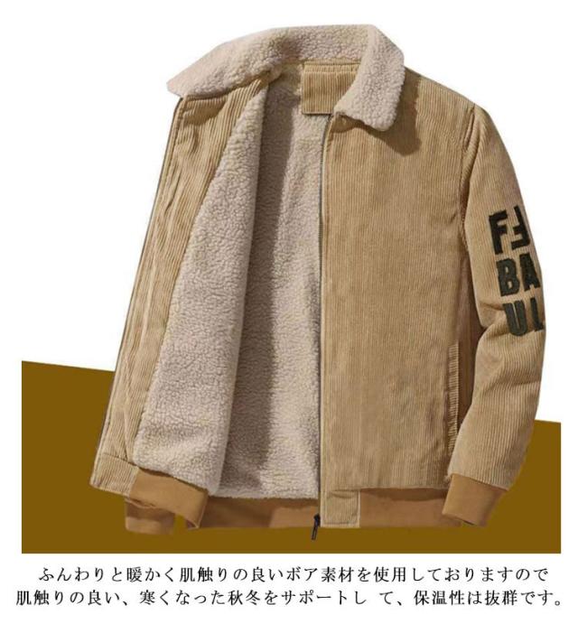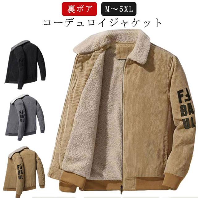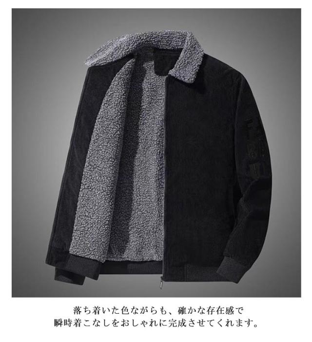 メンズ ジャケット コーデュロイジャケット メンズ コーチジャケット 大人 オシャレ アウター ボアジャケット ランチコート 裏ボア ファー 暖かい カジュアル 秋 冬 ブラック 黒 20代 30代 40代 メンズファッション