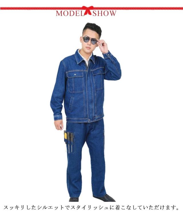 S-5XL 作業服 セットアップ デニム ジャケット メンズ デニムパンツ 長袖 ロングパンツ カーゴパンツ 綿 ツイル生地 ストレッチ 大きいサイズ 制電 ワーク 作業着 ゴムウエスト カジュアル おしゃれ しっかり【送料無料】