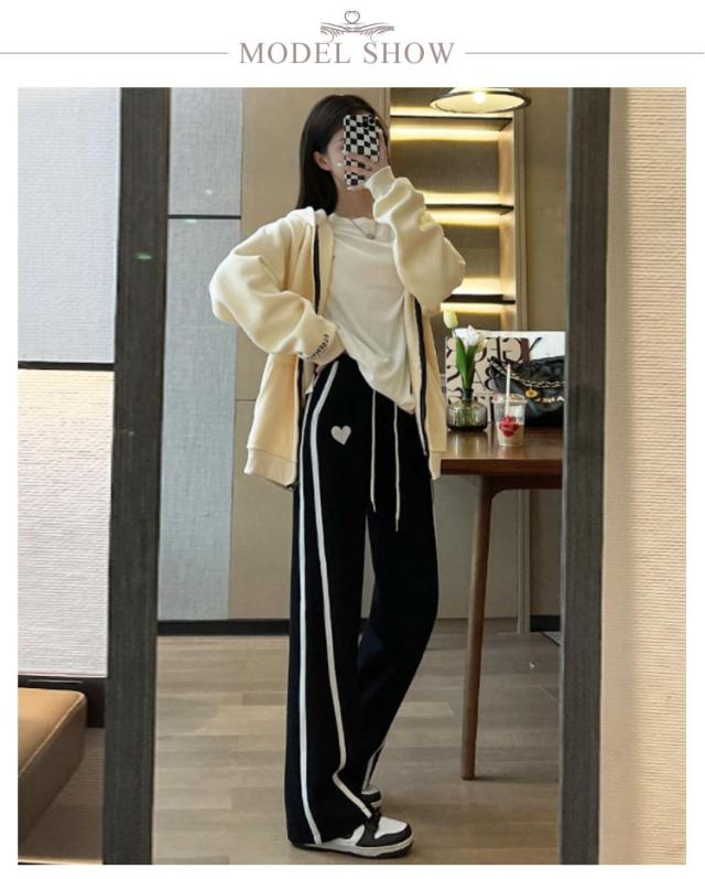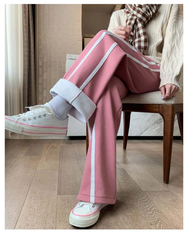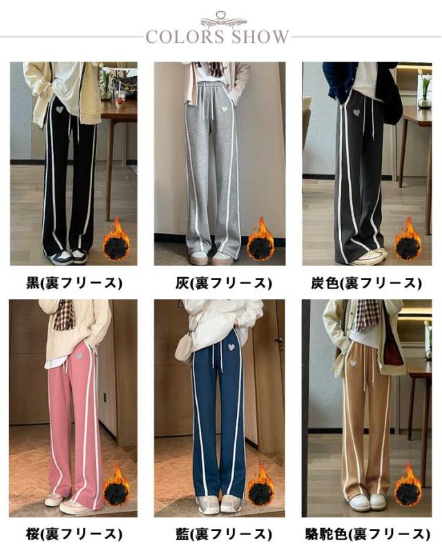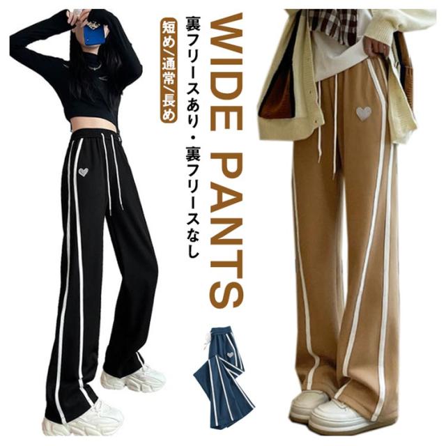 サイドライン入り スウェットパンツ ロングパンツ 裏フリース ワイドパンツ ストレートパンツ 秋冬 あったか レディース 裏起毛 パンツ あったかボトムス 防寒 パンツ ジャージパンツ 裏フリース リラックス パンツ ハイウェスト パンツ イージーパンツ 送料無料