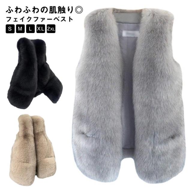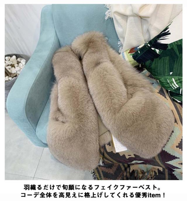 フェイク 毛皮 ベスト フェイクファー ベスト フェイク フォックスファー ベスト ミドル丈 エコファー ベスト フォックスファー風 ベスト 秋冬 ベスト ボリューム フェイクファーベスト レディース フェイクファー ジャケット ノースリーブ 送料無料