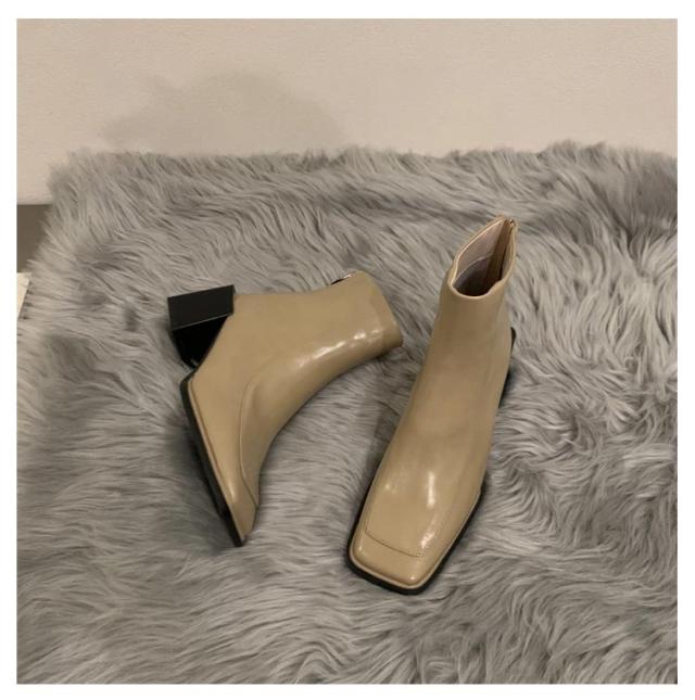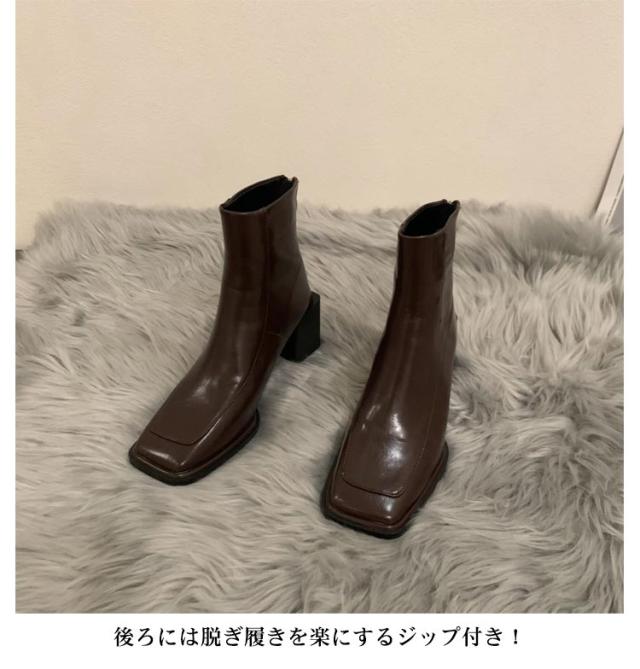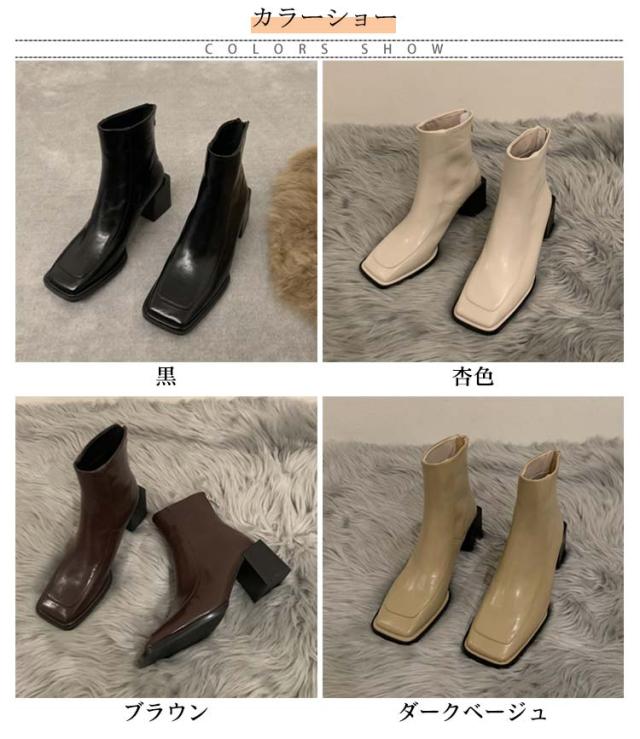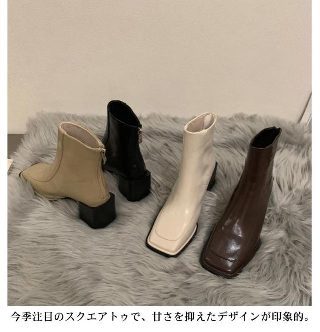 チャンキーヒール ブーツ ショートブーツ スクエアトゥ バックファスナー 太めヒール ショートブーツ レディース ブーツ ショート丈 ショートブーツ バックジップ ショートブーツ 痛くない ブーツ 歩きやすい 靴 シューズ 送料無料