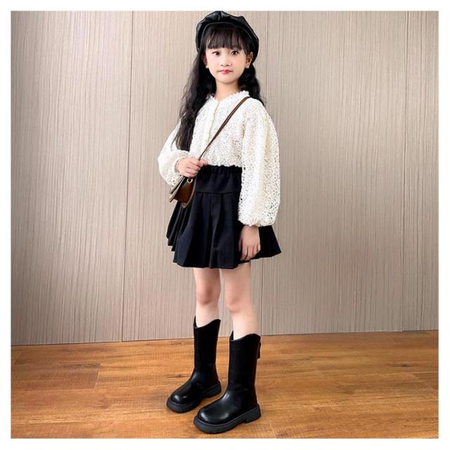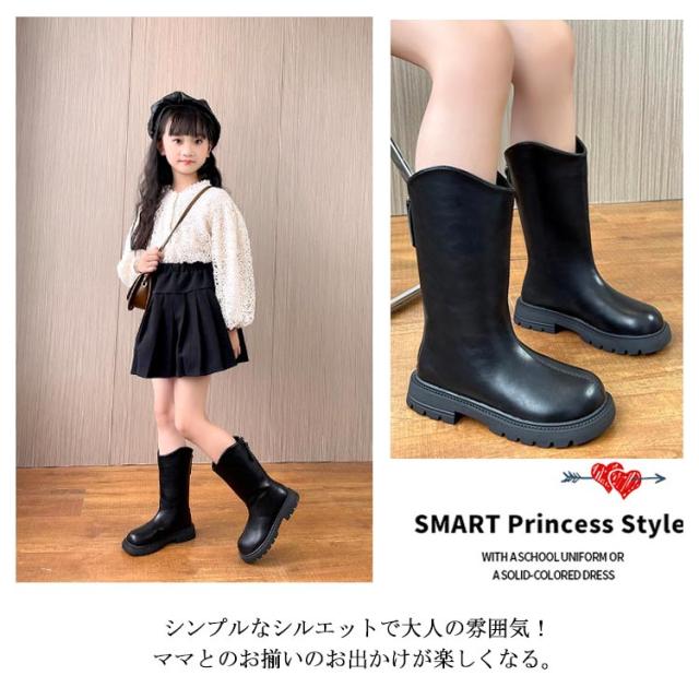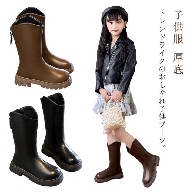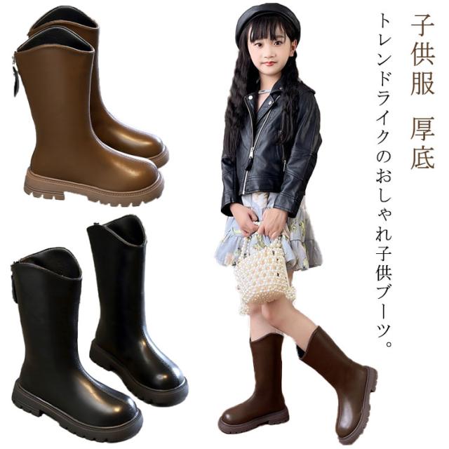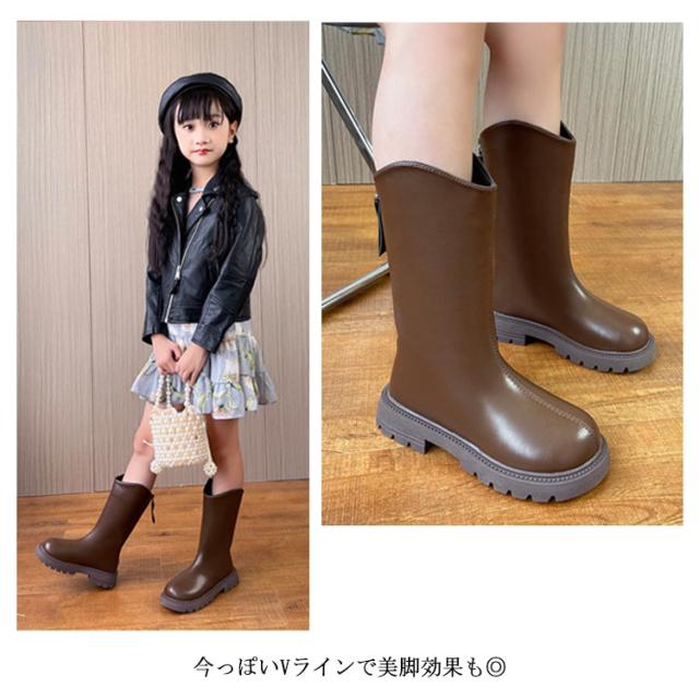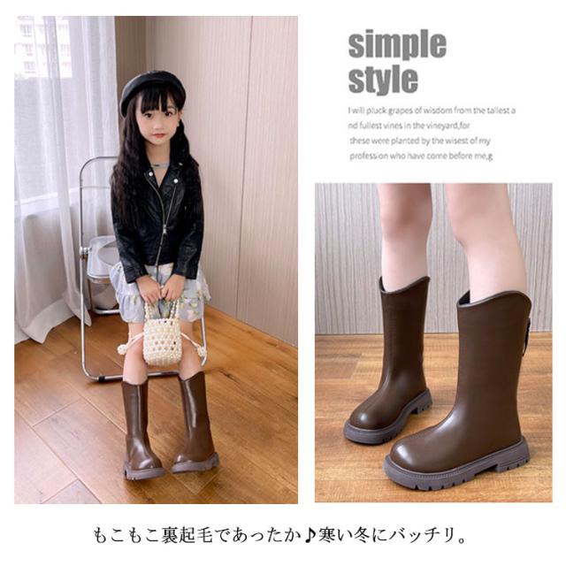 ブーツ 子供靴 ロングブーツ ジュニア Vライン ローヒール ぺたんこ 靴 キッズ 女の子 裏起毛 美脚 ウエスタンブーツ 履きやすい 発表会 卒業式 入学式 結婚式 大きいザイズ