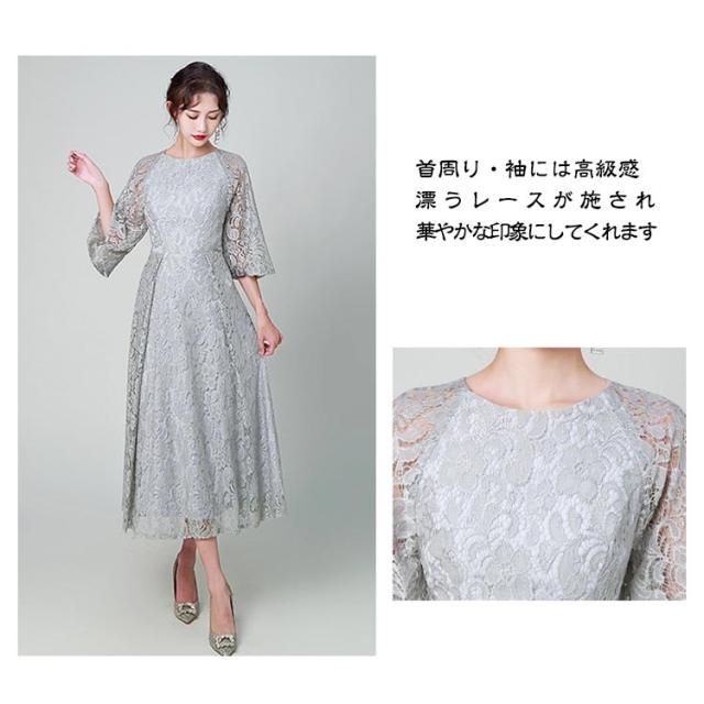 結婚式 ワンピース パーティードレス 花柄 レース ロングドレス 総レース シアー 透け感 フレア袖 オケージョン 春 夏 秋 冬 パーティドレス 二次会 謝恩会 成人式 同窓会 体型カバー 服装 入学式 卒業式