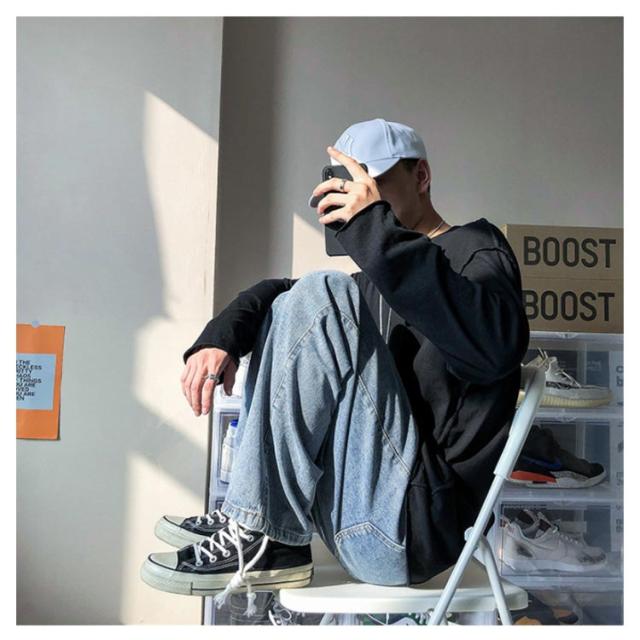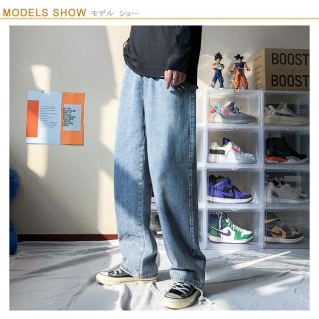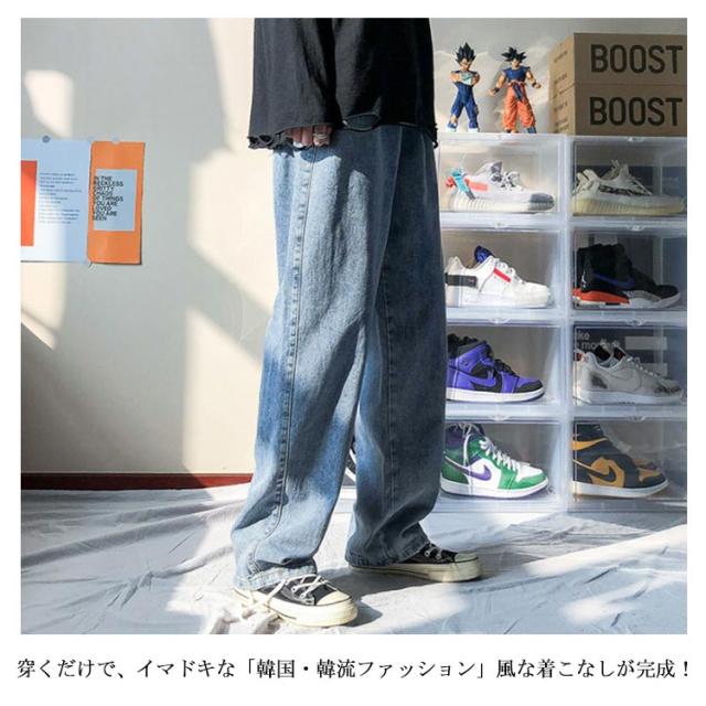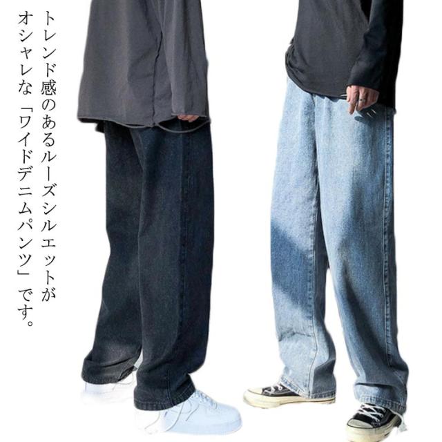 送料無料 ワイドパンツ ジーンズ メンズ ボトムス 秋 韓国 デニムパンツ 春 デニムパンツ ロングパンツ 長ズボン 無地 ビッグシルエット ジーパン ストレート パンツ ガウチョパンツ ルーズ 春 夏 秋 冬 大きいサイズ デニム