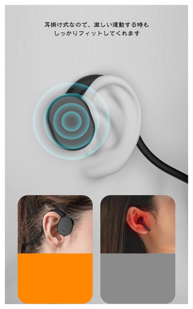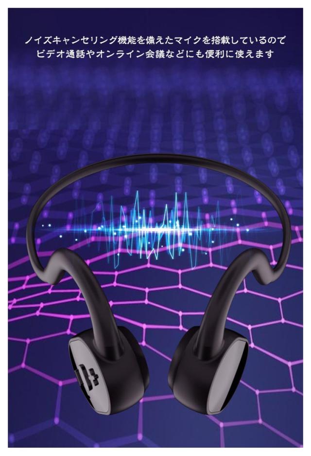 | Bluetooth 5.3最新作・周囲の声も聞こえる安心感骨伝導ヘッドセット。 従来より省エネ、低遅延、安定の接続を実現するbluetooth5.3を採用し、ゲームやドラマ鑑賞する時より快適。 ノイズキャンセリング機能を備えたマイクを搭載しているのでビデオ通話やオンライン会議などにも便利に使えます。 音漏れなくリアルな骨伝導イヤホン!耳の近くから内耳に微細な振動を伝える骨伝導仕様で、イヤホンを耳道に入らず、高音の刺激から聴力を保護。 超軽量・なめらかな素材を採用し、長時間の装着でも痛くなりにくく、メガネをかけた状態でも使用可能です。 耳掛け式なので、激しい運動する時もしっかりフィットしてくれます。 スポーツ、通勤や通学、旅行などにおすすめです。 | |