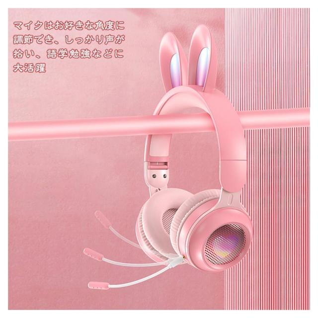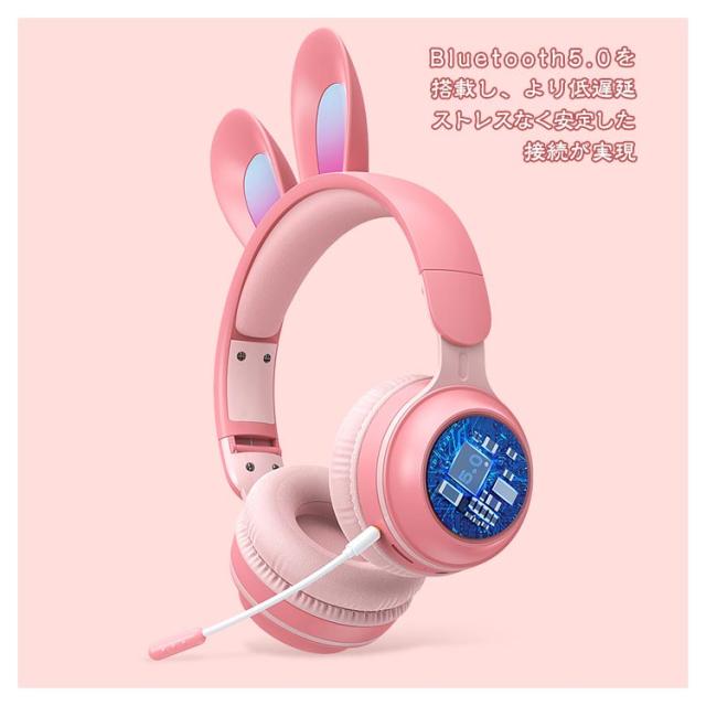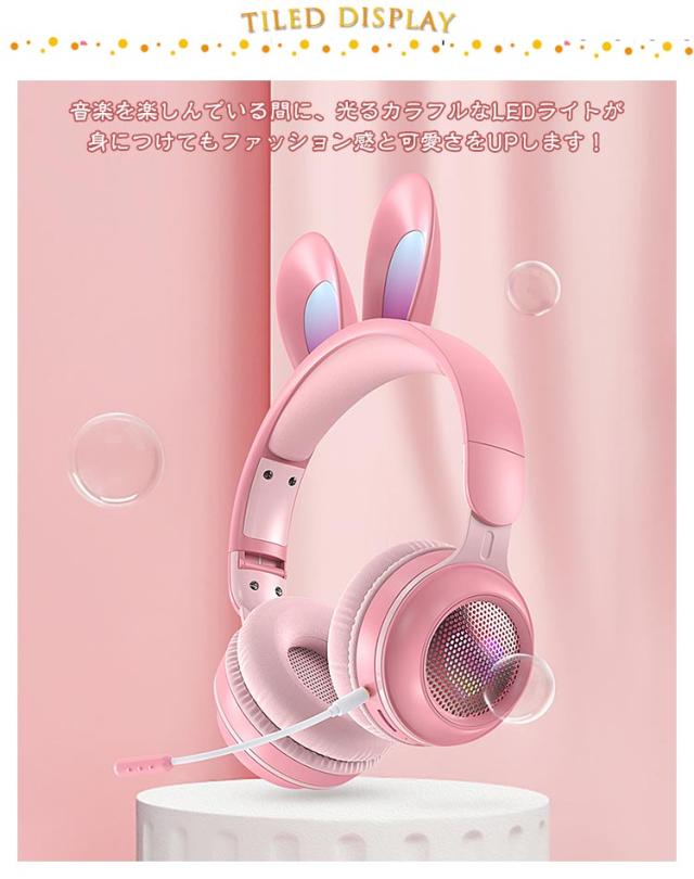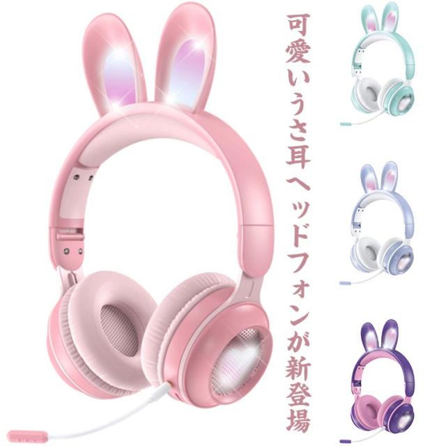 ヘッドホン ヘッドフォン マイク付き LEDライト うさ耳ヘッドフォン 折りたたみ式 bluetooth5.0 ワイヤレスイヤホン 有線 子供 大人