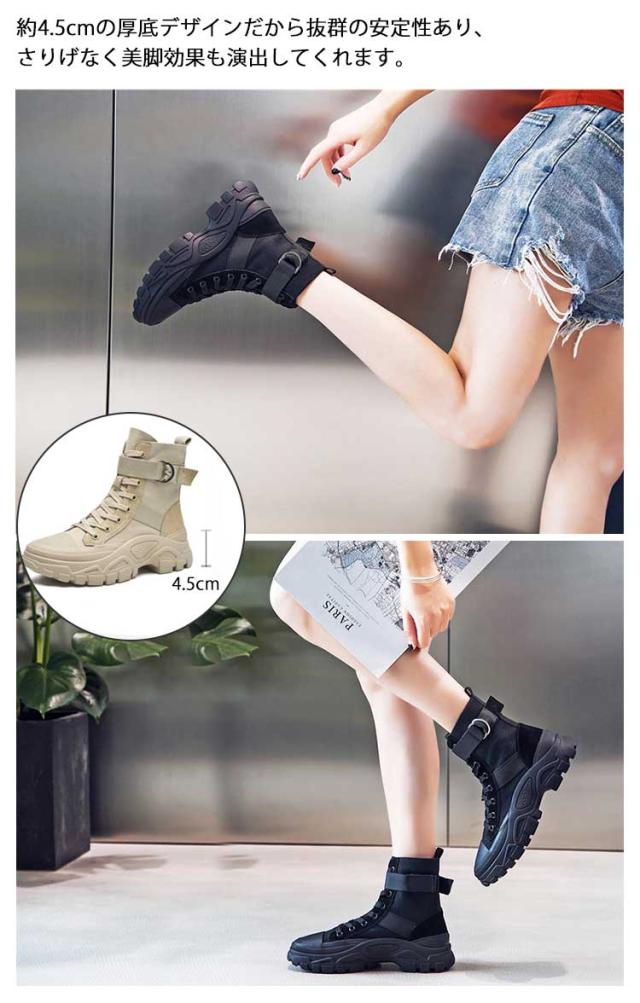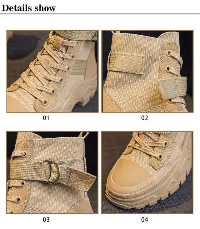 | ストリートの定番、不動の人気を誇る定番のワークブーツ! 足首ベルト付きでしっかりとサポートできて、すっきりとした印象に 表地はしっかりと丈夫なキャンバス生地を採用します。 約4.5cmの厚底デザインだから抜群の安定性あり、さりげなく美脚効果も演出してくれます。 凹凸のあるアウトソールで滑りにくく、雨の日も心配ありません。 寒さ対策のため、あったかな裏起毛タイプも追加。 普段着ファッション、ハイキングシューズ、 ライダーブーツ、 サバゲ、サバイバルゲームに 履きやすさとトレンドさ兼備する一足間違いなし | |