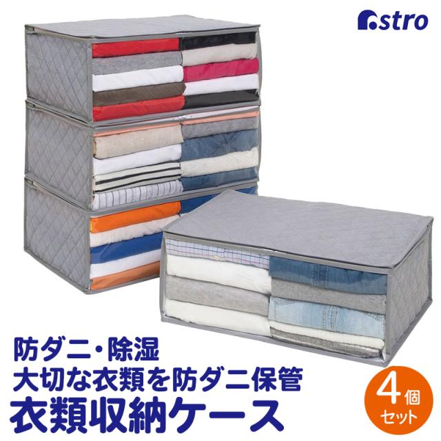 アストロ 収納ケース 衣類用 グレー 4個組 除湿 吸湿 防ダニ 不織布 収納袋 収納ボックス 衣装ケース 中身が見える 透明窓付き 616-37
