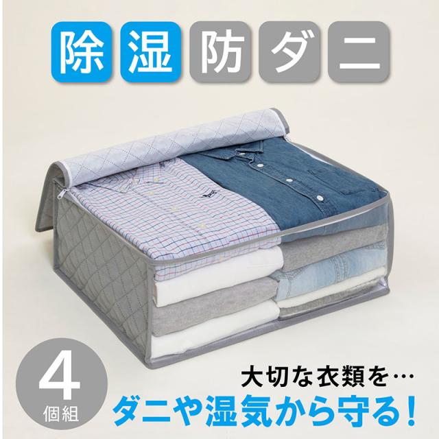商品名:ドライ&ドライ 吸湿 防ダニ 衣類収納袋 グレー 4個組