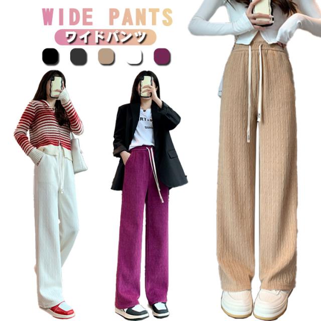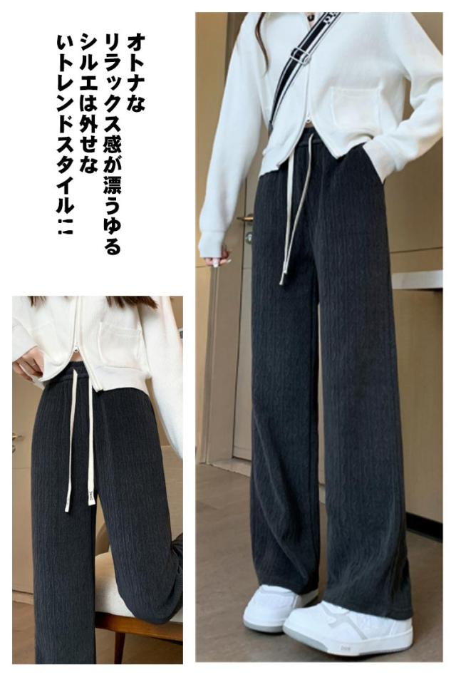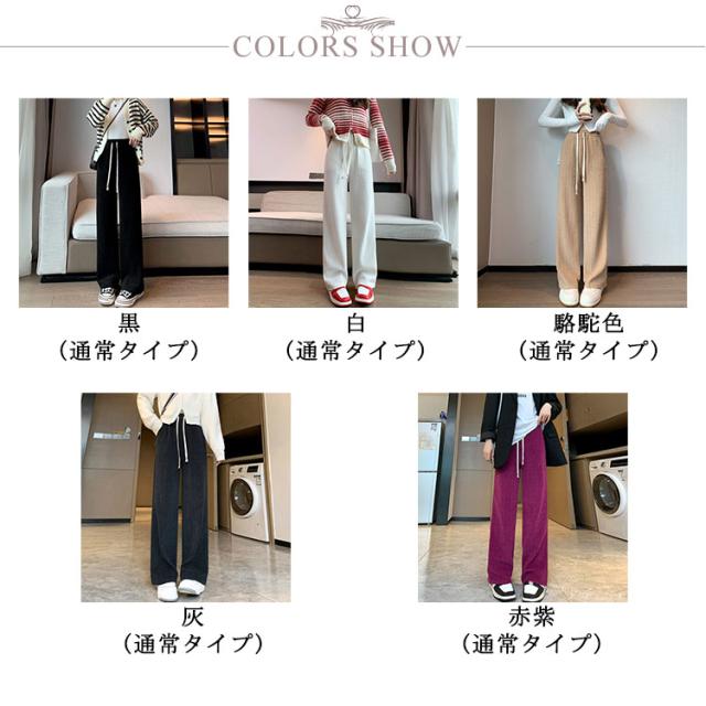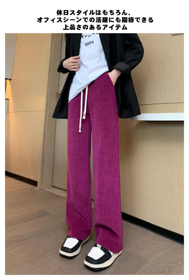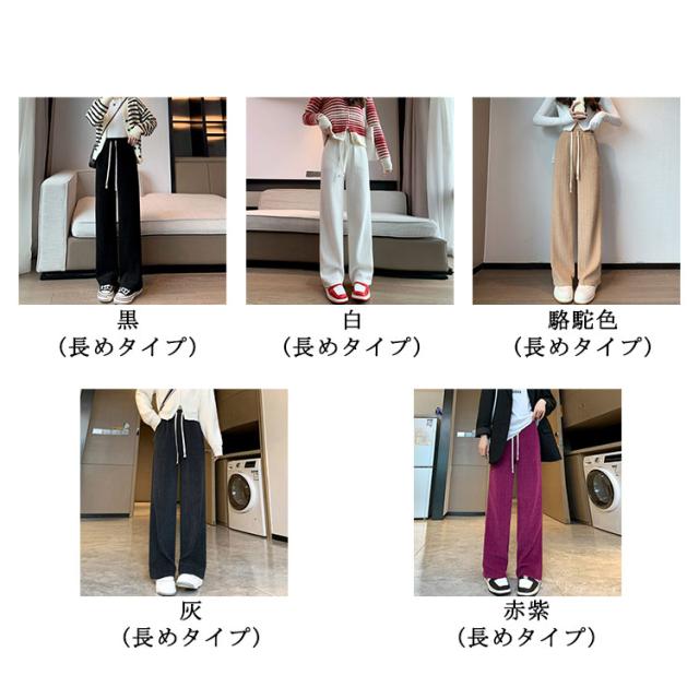 パンツ ハイウェスト 大きいサイズ ゆったり ロング ストレートパンツ ワイドパンツ イージーパンツ ロングパンツ ワイドパンツ レディース ウエストゴム ボトムス パンツ ロング 美脚 通勤 秋冬