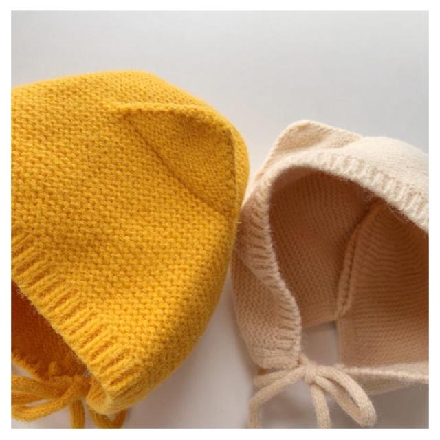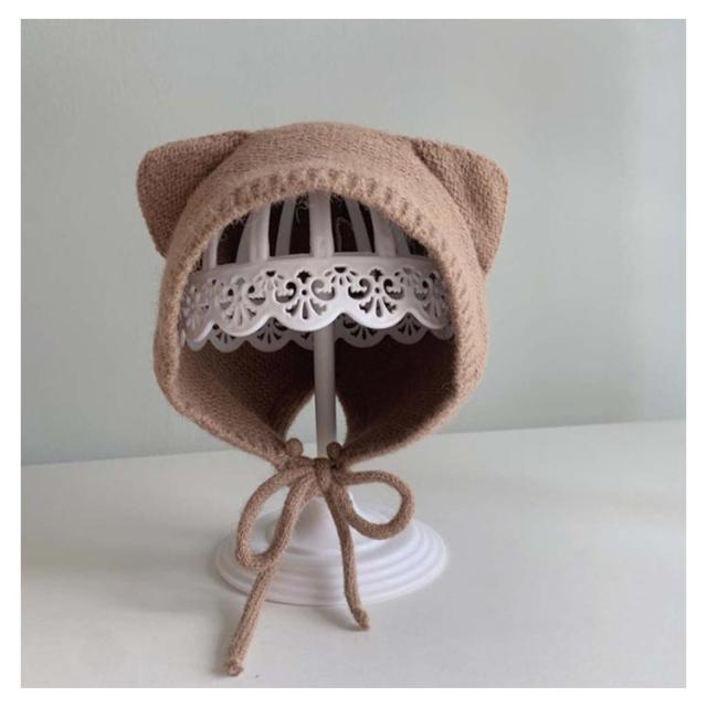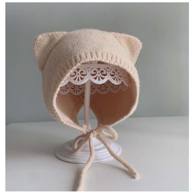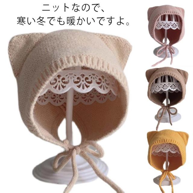 4-12ヶ月使用 こども ぼうし ベビー用 帽子 アニマルフードのニット帽耳付き 耳付き キャップ ベビー 赤ちゃん 女の子 男の子 ニット帽 無地 ベビー用