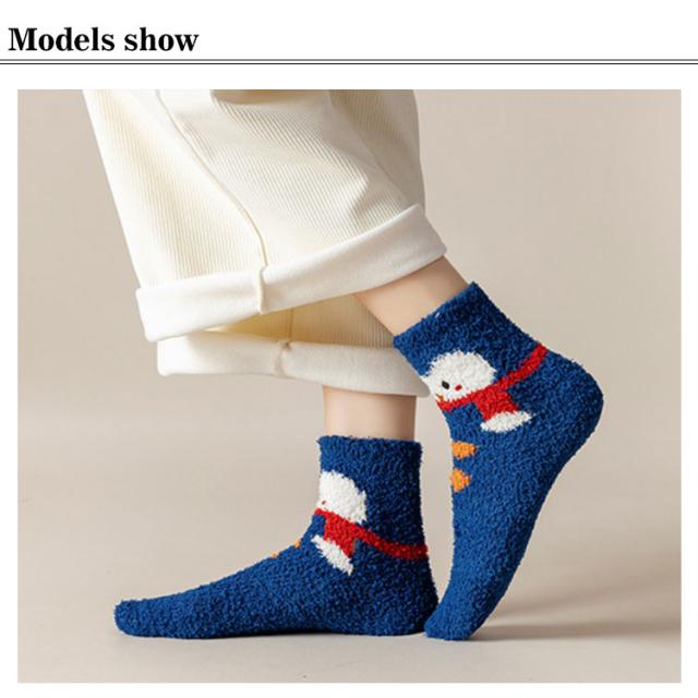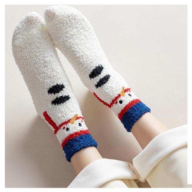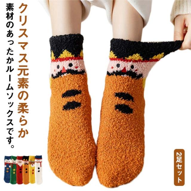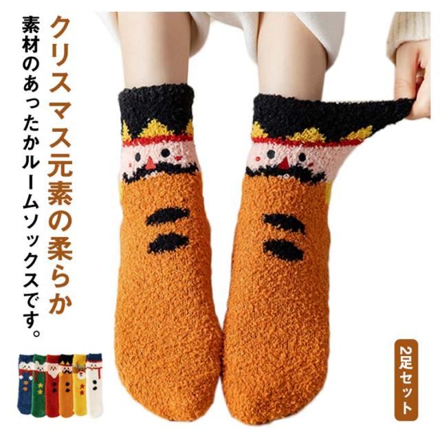 友達 くつした ソックス 暖かい 防寒 クルー丈 クリスマス柄 可愛い レディース 靴下 2足セット もこもこ ふわふわ モコモコ 厚手 女子高生 保温 サンタクロース 雪だるま クリスマスプレゼント 娘 ルームソックス