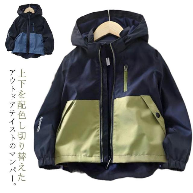 | 上下を配色し切り替えたアウトドアテイストのマンパー。 スポーティーなルックスに、アクセントとなるモダンな切り替えデザインがおしゃれに決まるトレンド感溢れる1着です。 裏地はメッシュ通気性の良い素材です。 袖口はリブ仕様なので、冷たい風もシャットアウトしてくれます。 両サイドポケットがついているのでハンカチなどの小物を入れられるのも嬉しいポイント! シンプルなデザインなので、どんなコーデにも合わせやすいです。 デイリーから通園通学、アウトドアまで幅広いシーンで使用でき、着こなしの幅が広がります。 | |