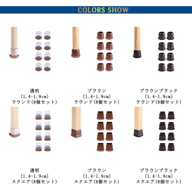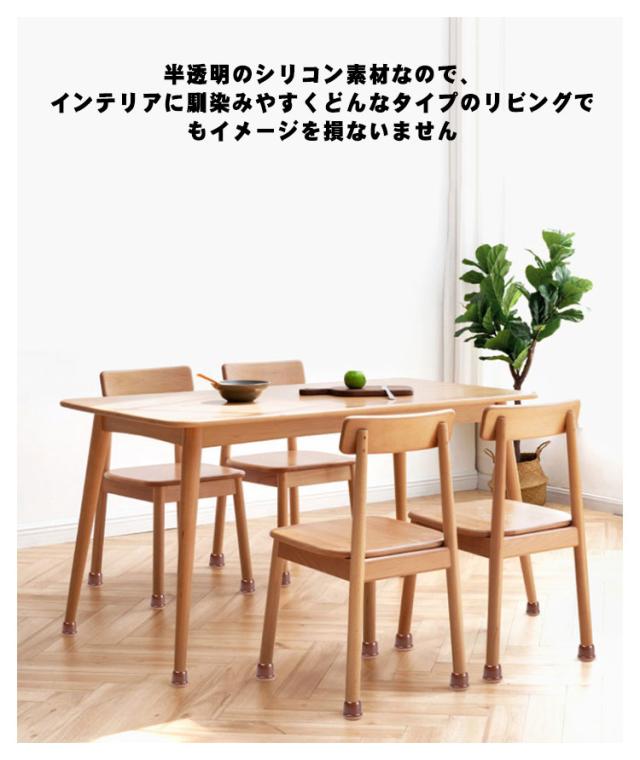 | 床の傷つけ防止に!底部補強加工チェアソックス8個セット。 半透明のシリコン素材なので、インテリアに馴染みやすくどんなタイプのリビングでもイメージを損ないません。 底面にはフェルトが貼ってあり、フローリングを傷から守ります。椅子を動かす時も、音が静かで気持ちにも床にも優しい椅子カバーです。 柔らかいシリコン素材なので、椅子にも簡単に装着できます。 対応サイズは、3種類あり椅子だけでなく、机や棚などもサイズが合えばご使用いただけます。 | |