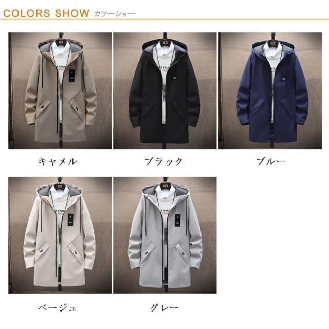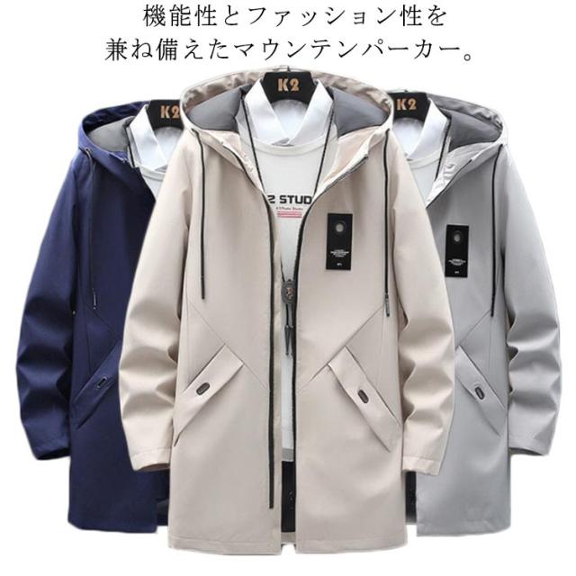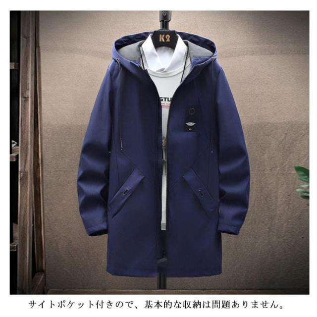 秋 ジップパーカー スプリングコート 春 トレンチコート 冬 スプリングコート ロングコート ミリタリーコート メンズ ブルゾン マウンテンパーカー 防風 アウター 送料無料 軽量 プリント フード付き 薄手 無地 カジュアルコート カッコイイ 春服 秋物 通学 コート 通勤