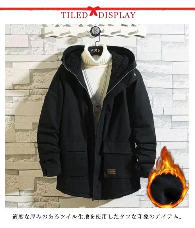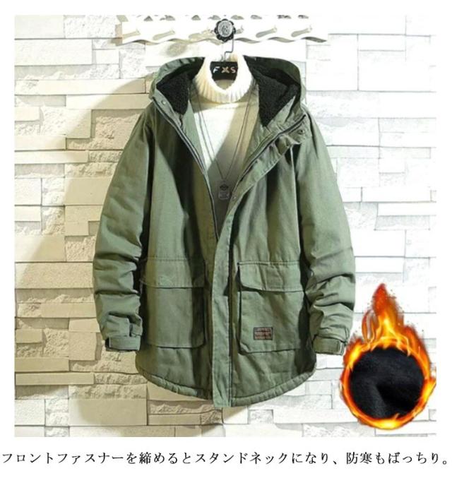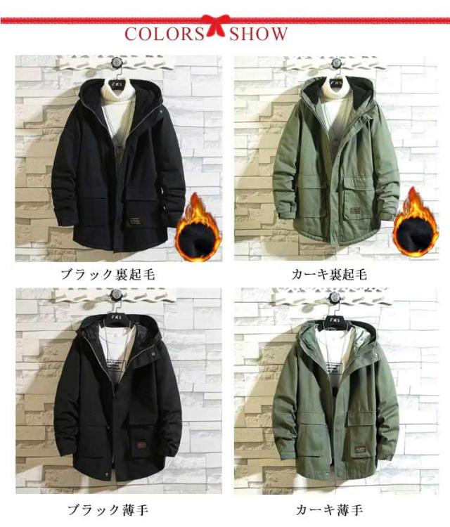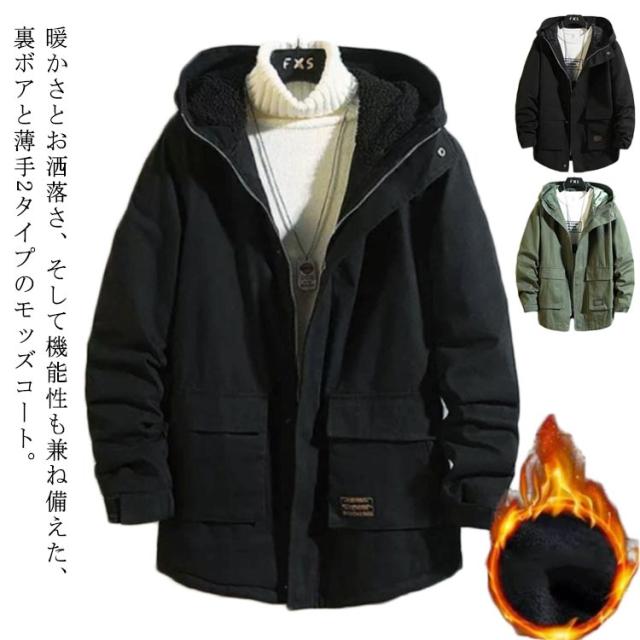 アメカジ メンズ 暖か コットン ミドル丈 ツイル生地 裏起毛と薄手2タイプ モッズコート アウター 裏ボア 厚手 コットン 秋冬 ミリタリージャケット アウトドア 防寒 保温 学生 無地 ミリタリーコート