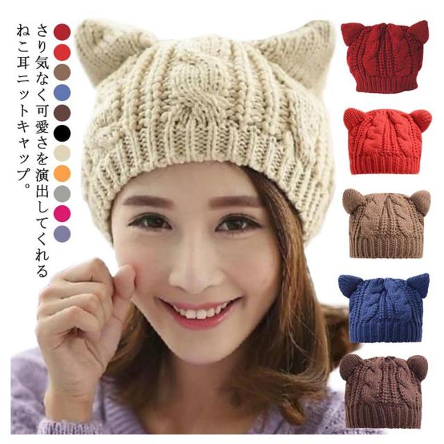 帽子 秋冬 ケーブル編み コスプレ ベレー帽 ニット帽 猫耳 ネコ耳 ねこ レディース おしゃれ 全11色 レディース かわいい 暖かい ニットキャップ 仮装 コーデ クリスマス プレゼント 防寒 通学 通勤 おしゃれ