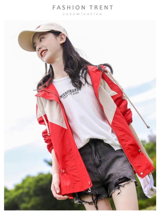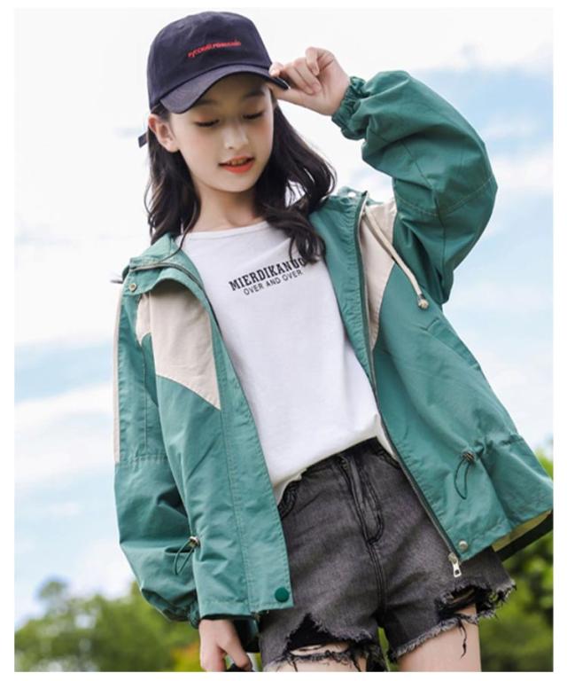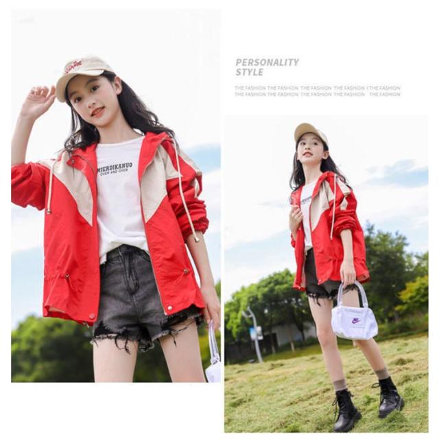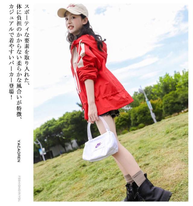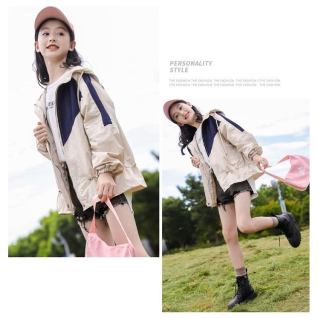 ウインドブレーカー スプリングコート マウンテンパーカー ジャンパー ジャケット キッズ 切り替え 子供服 送料無料 ジャージ 薄手 中綿入り 春 アウター フード付き 長袖 160 送料無料 秋 秋服 かわいい 130 140 150 女の子