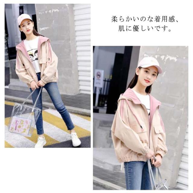 ジャケット 子供服 女の子 秋物 スタジャン ブルゾン ウィンドブレーカー 春物 トップス 130 防風 フード付き 薄手&裏起毛 春コート 配色 ジップアップ 170 切り替え カジュアル お洒落 ガールズ ジャンパー アウター 140 150 160 マウンテンパーカー