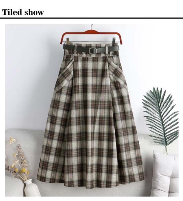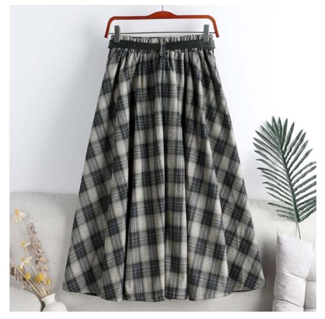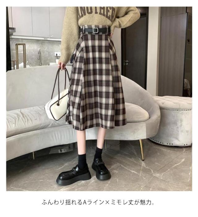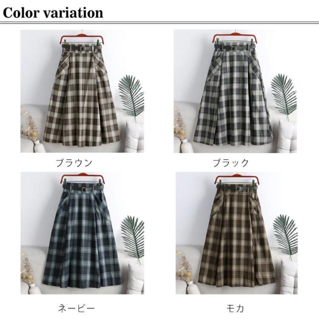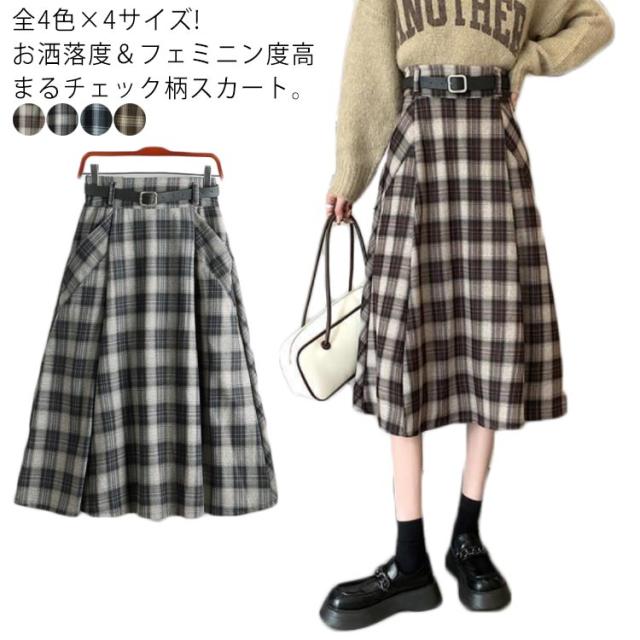 ロングスカート 膝下丈 Aラインスカート ロング チェック柄スカート 秋冬 ハイウエストスカート 通勤 チェック ハイウエストスカート ミモレ丈 体型カバー ベルト付属 カジュアル スカート