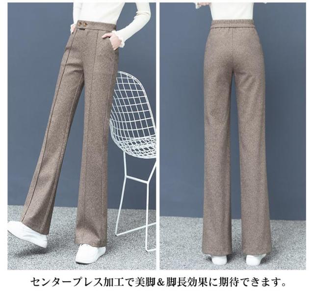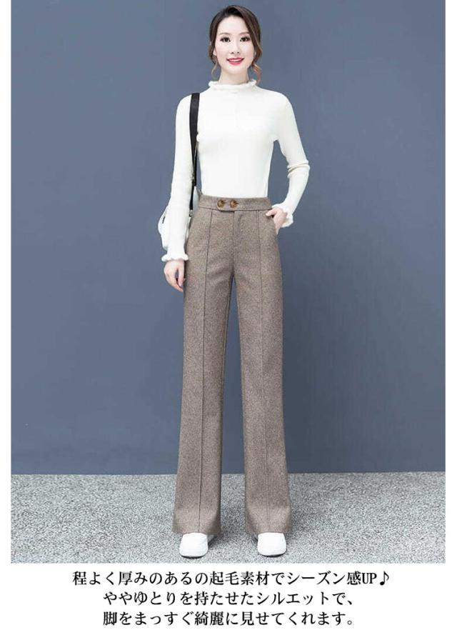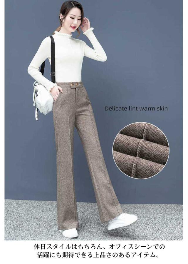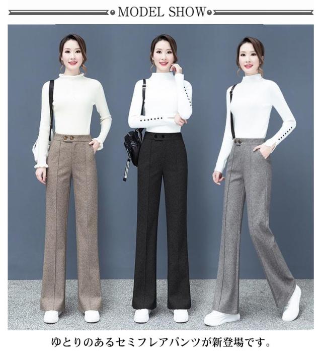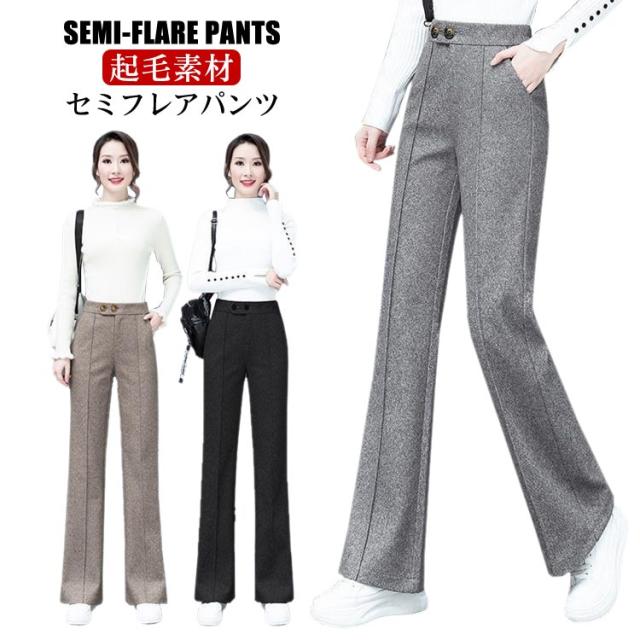 秋冬 セミフレアパンツ メルトン センタープレス レディース パンツ パンツ 裾フレア 冷え対策 あったか ワイドパンツ ゆったり パンツ ワイドパンツ パンツ 10分丈 起毛素材 ストレートパンツ リラックス パンツ イージーパンツ ロングパンツ