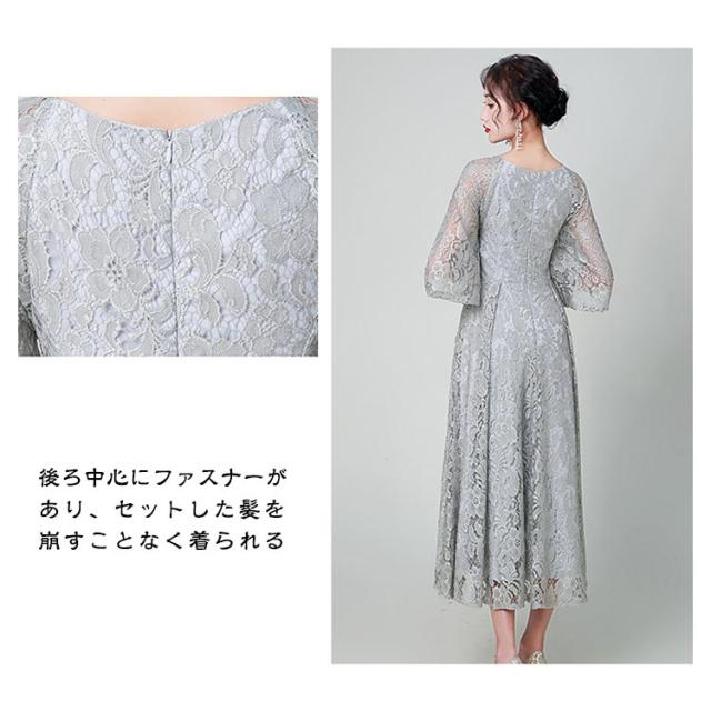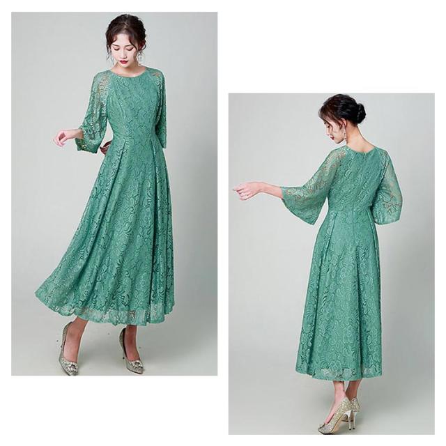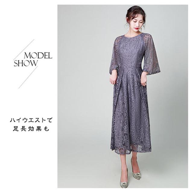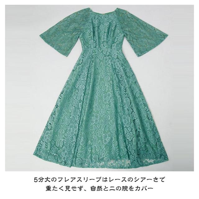 結婚式 ワンピース ロングドレス 花柄 春 透け感 総レース シアー 夏 成人式 パーティードレス フレア袖 オケージョン 秋 冬 パーティドレス 二次会 謝恩会 服装 同窓会 体型カバー 透け感 レース